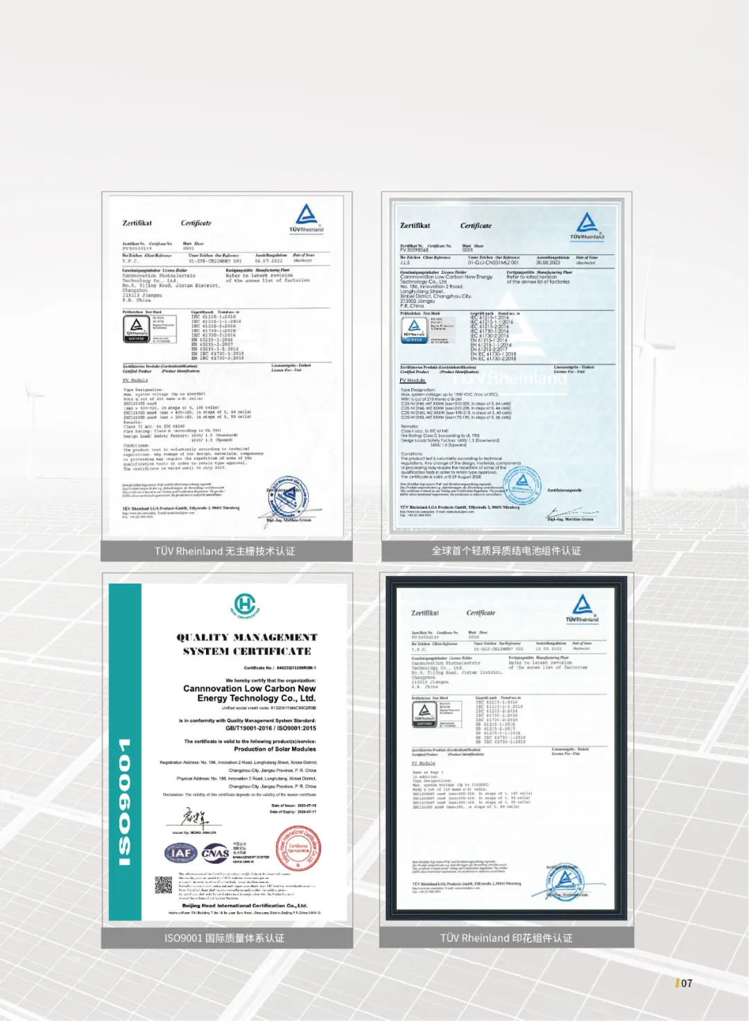 中能创是中国第一个、全球第二个掌握无主栅异质结关键技术的企业,2022年公司生产的全球首个210无主栅异质结组件获得了德国TÜV莱茵的权威认证。中能创核心技术团队脱胎于国家863计划,深耕异质结技术十余年,目前已经拥有发明专利60余项,其中海外发明专利22项。2022年、2023年中能创连续2年入选清科投资界中国碳中和50强。
