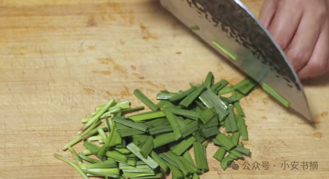 清洗干净以后,我们把韭菜捞出放到菜板上,然后将其切成段。段的大小自己掌握,不过一般来说,适中的大小更容易泡制。切好的韭菜段,我们放到一个干净的碗中备用。