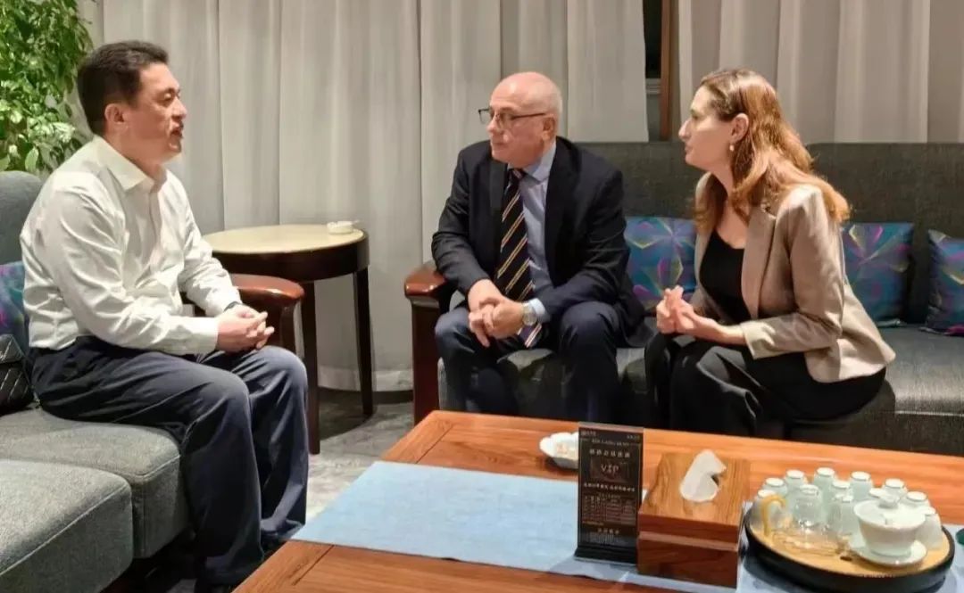 巴阿达·卡岚达泽与黄宇彤会见了宝丰酒业董事长王若飞,就格鲁吉亚葡萄酒与宝丰白酒的深度合作进行了详细探讨,为中国食品院在助力白酒国际化方面的工作按下了加速键。
