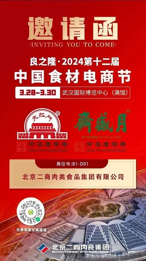 3月28日至3月30日,北京二商肉食集团将重装亮相“良之隆”2024第十二届中国食材电商节,我们在武汉国际博览中心B1-D01展位,随时期待您的光临,共襄行业盛会,共促行业发展。
