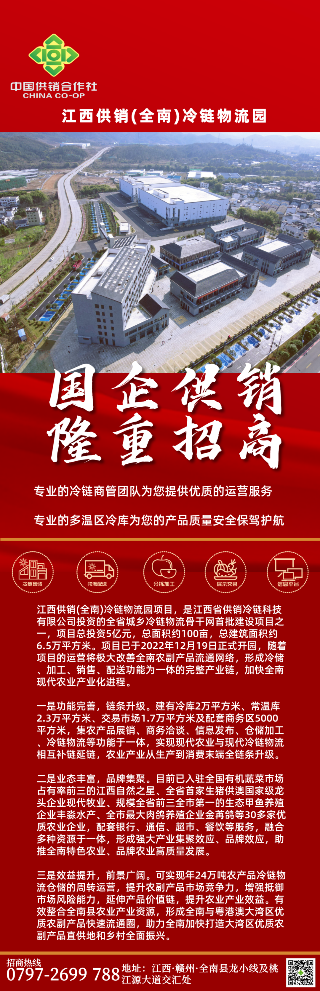 1、江西供销(全南)冷链物流园项目交易区商铺的营销工作;