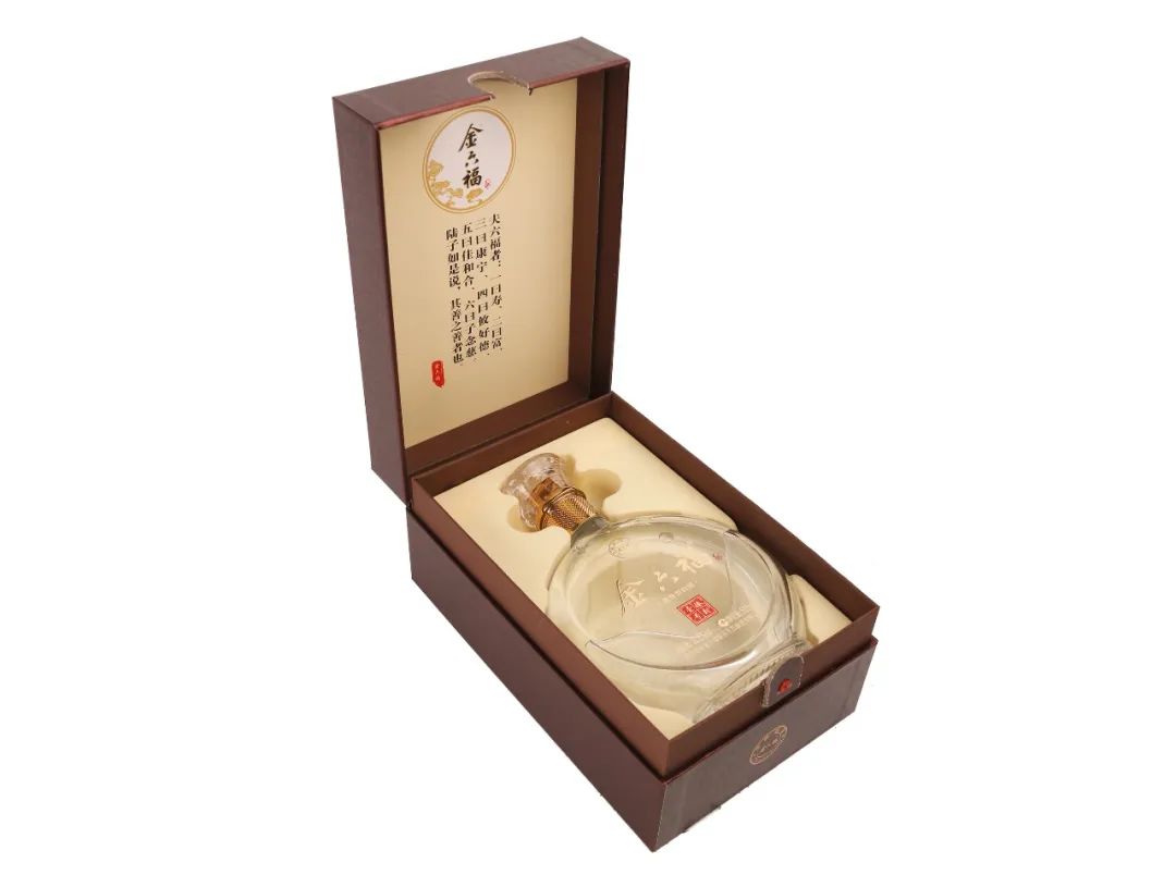 金六福酒:五粮液酒厂系列品牌, “金”代表权力富贵和地位;“六”为六六大顺;“福”为福气多多。五星级金六福设计新颖,其开盒时“开门见福”,取酒时“揭福”,酒瓶如古钱袋,寓意吉祥,处处让人心情开朗。六福酒融汇了中国传统的民族特色和精湛的酿造工艺。与五粮液酒同工艺、同原料,具有香气悠久、味醇厚、入口甘美、入喉爽静、酒体丰满谐调的独特风格。