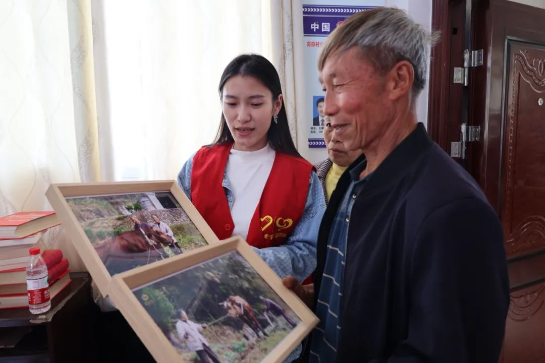 志愿者们走到田坎,拍摄村民辛勤劳动瞬间,在党群服务中心布置拍摄幕布,定格村民幸福笑容。看着用精美相框装裱的照片,村民们一遍又一遍用质朴的语言对志愿者们表示感谢。