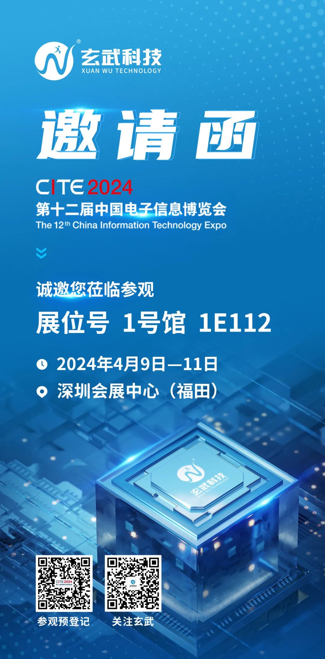 第十二届中国电子信息博览会(CITE 2024)将于4月9日-11日,在深圳会展中心(福田)举行。玄武科技诚邀您莅临我司展位交流。