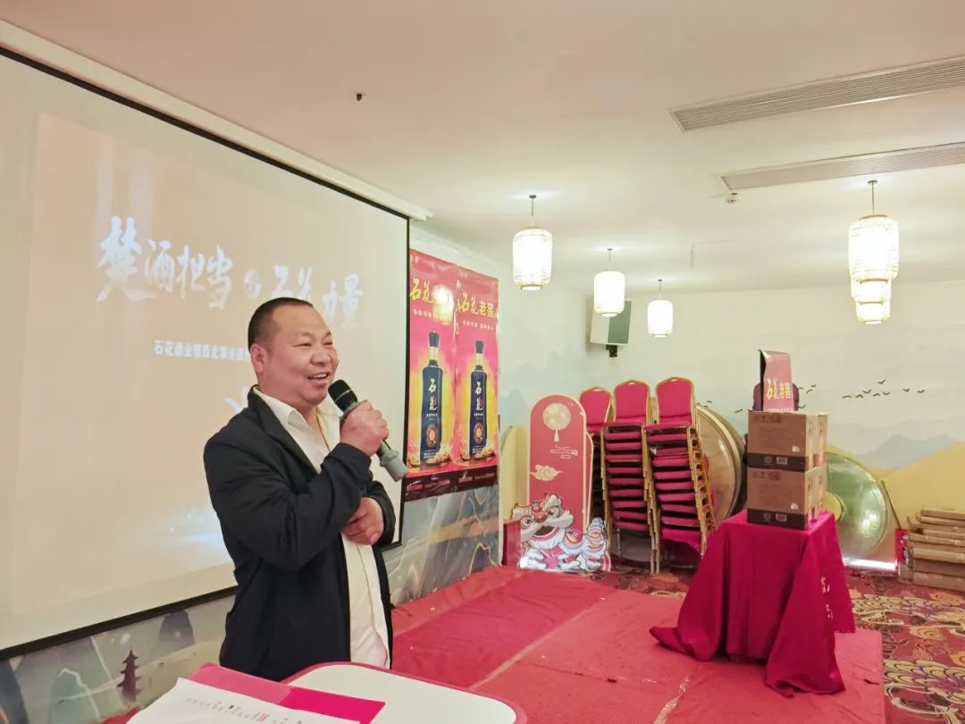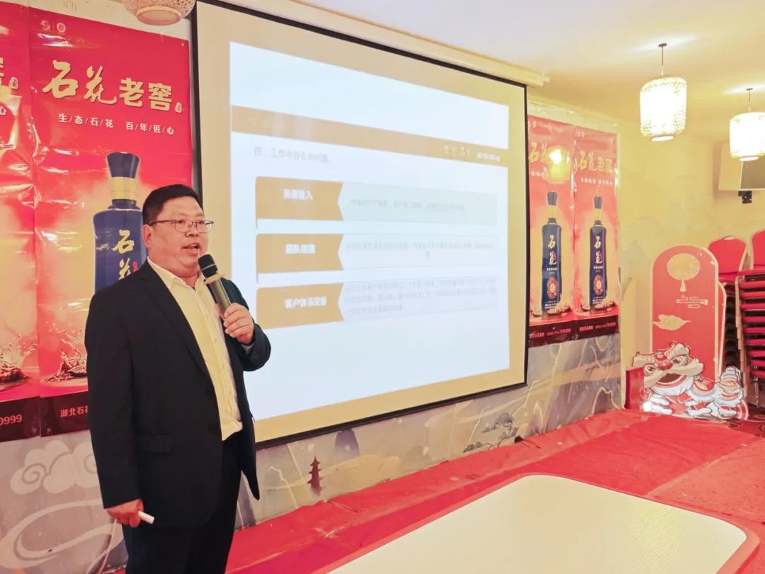 会议开始,石花酒业鄂西北事业部竹溪办事处副经理顾安智为合作伙伴们讲解了竹溪老窖2023年总结及春风活动方案。