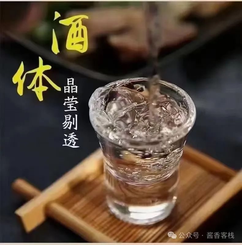 将酒倒入透明玻璃杯中,观察其颜色和透明度。优质酱香型白酒应呈微黄色或无色透明,无悬浮物、沉淀物。