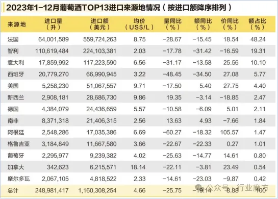 6、2023年1-12月中国葡萄酒进口来源地分布情况