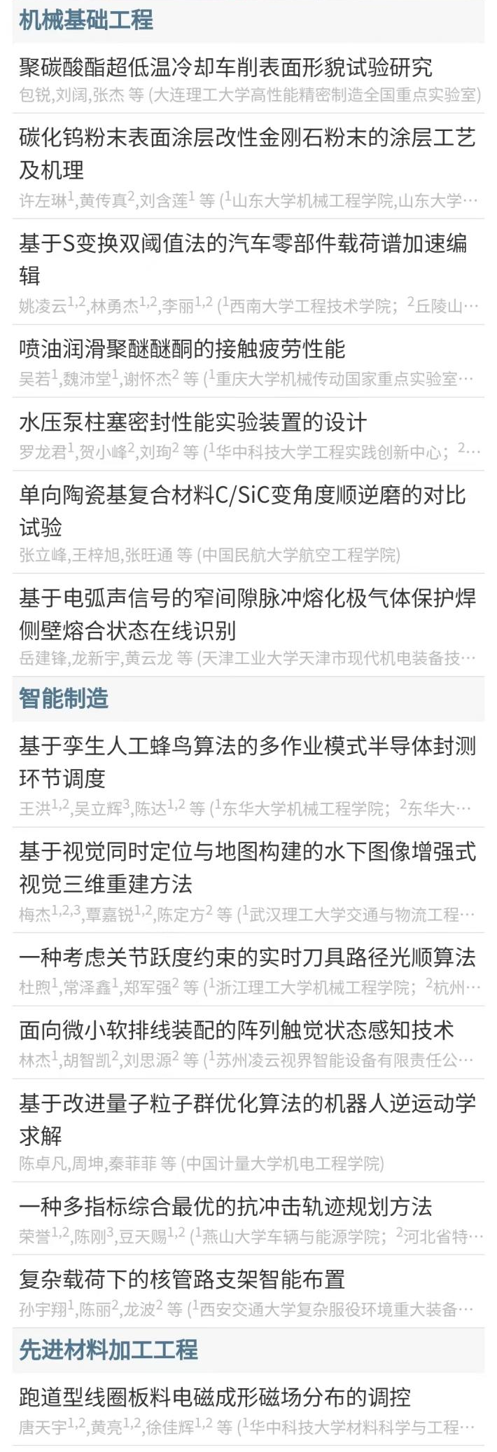 简介:《中国机械工程》主办单位为中国机械工程学会,其主管单位为中国科学技术协会。《中国机械工程》以反映中国机械工程领域的重大学术进展、报道中国机械工程学会系统的最新学术信息、传播重大机械科技成果、不断跟踪世界机械工程最新动向、注重完善机械科技人员的知识结构为主要内容;以深内涵、广视野、强应变、高品位、厚基础为办刊特色。主要栏目:机械基础工程、智能制造、可持续制造、增材制造、先进材料加工工程、服务型制造、工程前沿、争鸣与反思等。