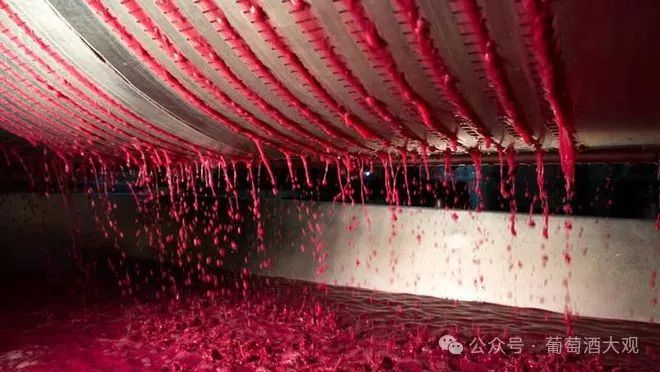在浸渍完以后,就会对葡萄混合物进行压榨,压榨的主要目的就是为了把葡萄果皮、果肉、果籽、果梗等物与葡萄汁完全分离后进行发酵,这是一个非常重要的步骤,因为在压榨时,是必须保证果籽完好无损的,因为果籽中有自带的甘油物质,如果果籽破碎了,那这些甘油物质就会与酒液混合,影响葡萄酒的整体口感。