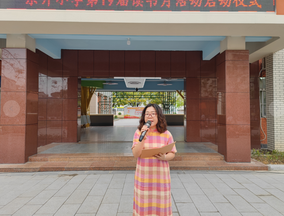 最后,彭玲校长通过“匡衡家贫,凿壁引光;孙康嗜书,映雪苦读;车胤爱书,囊萤借光,他们热爱读书且一生不懈,终成国家栋梁,民族英才”的实例号召同学们积极读书。并且向同学们提出了几点希望,如“养成每天最少读半小时书的习惯;把阅读所得与家人同学分享;周末的时候和爸爸妈妈一起到图书馆看书;充分利用课前3分钟,诵读经典诗词;积极参与读书月各项活动”等,希望同学们多读书,把读书获取的知识,通过不断的思考和实践,融会贯通,在读书中树立远大人生目标。