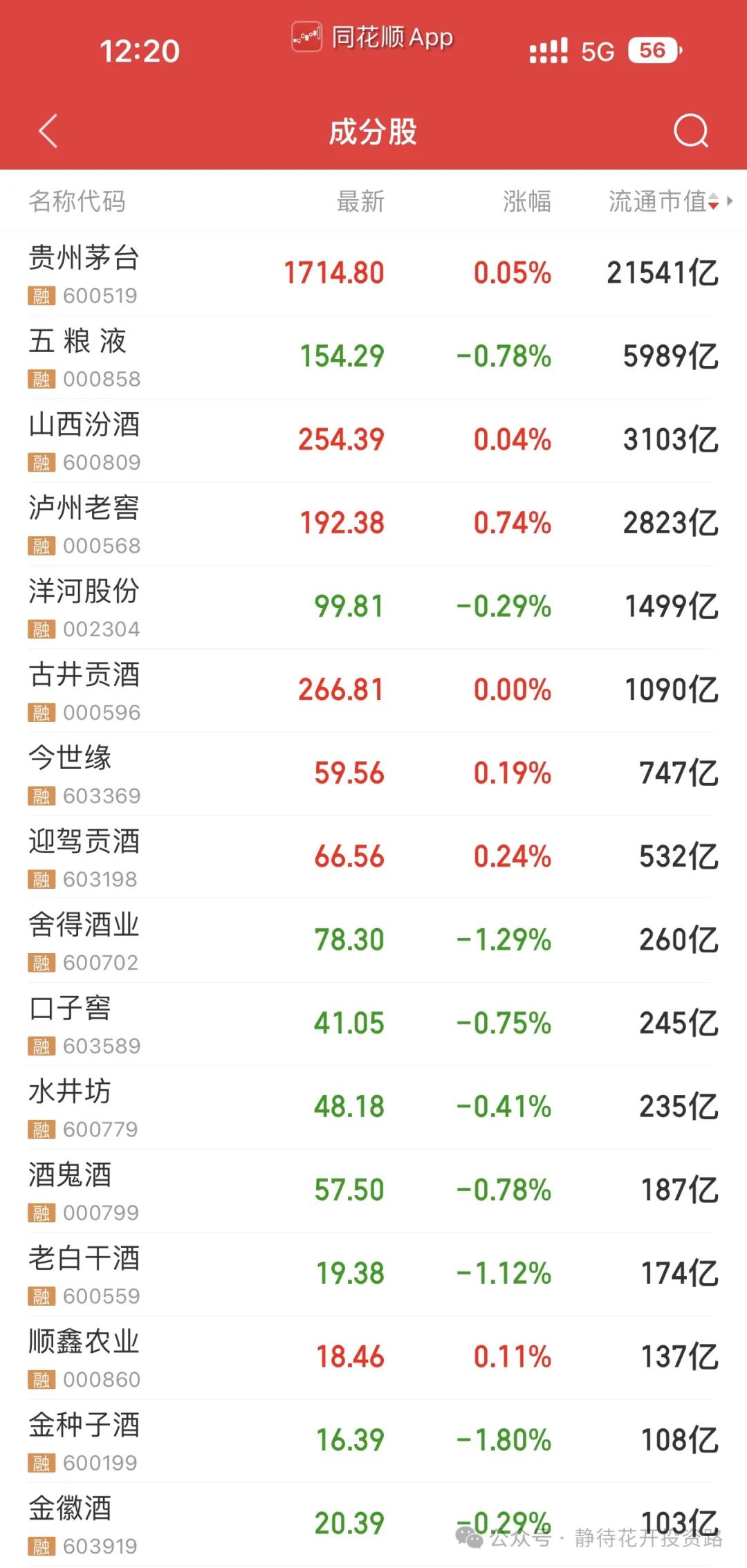 流通市值超过千亿的共六家,依次是贵州茅台、五粮液、山西汾酒、泸州老窖、洋河股份、古井贡酒。