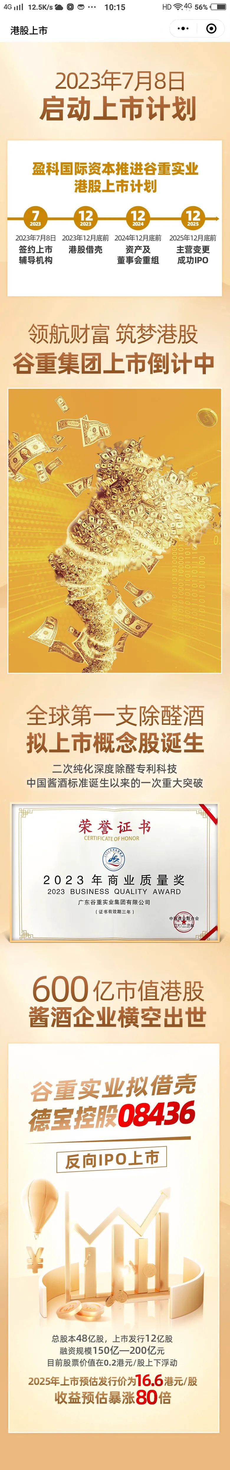 谷重实业集团 l 全球第一支除醛酒拟上市概念股诞生!