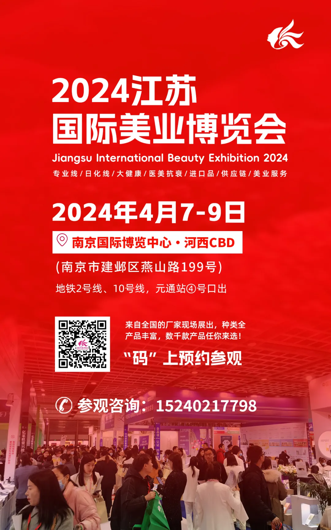 2024江苏国际美业博览会将于4月7日至9日在南京国际博览中心河西CBD隆重开幕!多维度全面呈现美业市场,带给美业同仁们更多新产品、新技术、新体验与新方向。