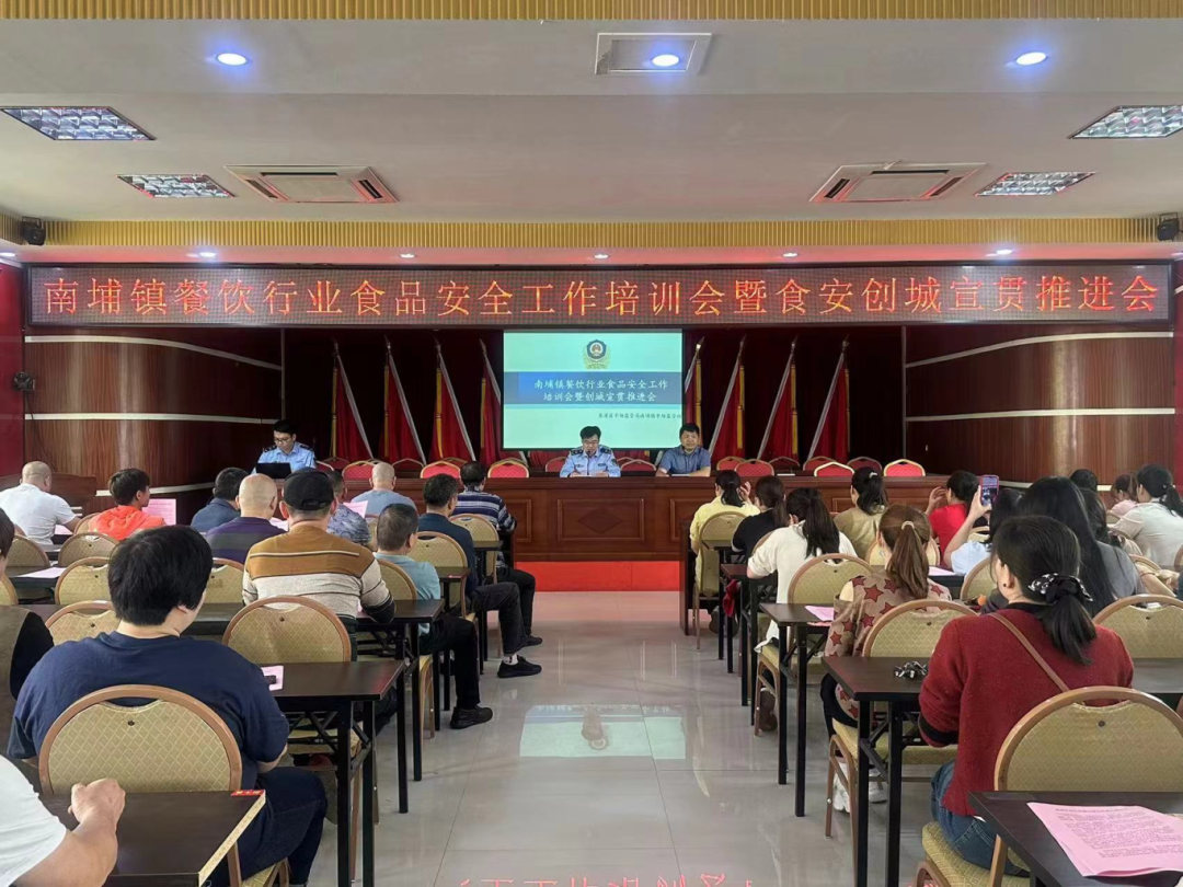 为全面推进国家食品安全示范城市创建工作,切实增强南埔镇餐饮行业经营者食品安全意识,提升餐饮从业人员食品安全管理水平,确保常态化创建全国文明城市、省级文明城区工作职责落实到位,4月3日,南埔镇市场监管所联合南埔镇人民政府开展餐饮行业食品安全培训会暨创城宣贯培训会,南埔镇学校、幼儿园、养老院、餐饮经营单位等103名餐饮从业人员到场参加培训。