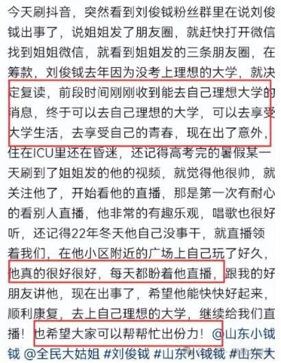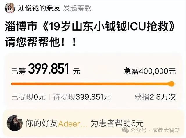 网红潘雨润最近在直播中透露,为税收缴纳了1亿元,这一消息让许多网友大开眼界:我们知道网红挣钱,但没想到是如此之多!网红虽多,但其粉丝规模的大小直接确定了其收入水平。一些人仅凭税收就缴纳了数十亿元,而另一些人却因生病而需要筹款。网友爆料称,一位在淄博拥有20万粉丝的网红于3月15日因昏迷被送进ICU,其家人随即发起筹款活动,此事引发了网友们的广泛讨论。刘俊钺是一位知名的网红,以英俊潇洒的外表走红,并与他的亲姐姐频繁合作拍摄视频进行产品推广,他们的社交账号总粉丝量约为40万。他们姐弟俩的视频更新频率相当频繁,几乎每天都会发布新视频。近期有一些粉丝发现,刘俊钺的账号从三月初开始就没有再更新了。不多时,他的姐姐在社交媒体主页上披露,弟弟遭遇意外,目前正在ICU接受治疗,还一直处于昏迷状态无法醒来。刘俊钺的姐姐没有说明住院原因,但迅速展开了筹款活动,仅一夜之间就筹得了40万元,以支付治疗费用。她在主页上还公布了自己的微信号,请粉丝捐款,看来是在暗示粉丝捐助。作为一个拥有数十万粉丝的网络红人,如果遭遇意外需要依赖粉丝捐款时,一些网友对此感到难以理解。有人爆料称,刘俊钺在家里喝酒后,在楼道里制造噪音,并无视邻居多次提醒。因一名脾气暴躁的邻居愤怒之下动手殴打刘俊钺,导致其脑部出血送往icu,目前仍处于昏迷状态。袭击者已被刑事拘留,但由于刘俊钺家人对其住院原因保持沉默,对于后续肇事者处理的结果尚无定论。网友爆料指出:“ICU中的自找之痛何在呢?”在言辞中毫不心存怜悯这位网络红人。许多网友看到后也认为,拥有如此庞大的粉丝群体,应该财力充足,即便遇到不测也能通过带货筹款解决,何必耗用筹款渠道,应该为真正贫困和疾病所困扰的人留下机会。富人竟然还在募款,一旦发现立即报告!越是富有的人,越是小气,甚至病费都不肯自付,这种人实在是对那些真正需要帮助的人不负责任。网络上关于刘俊钺住院筹款一事引发了广泛讨论,多数网友认为,这些知名网络红人向粉丝众筹并不妥当。然而,刘俊钺的支持者却持有不同看法,他们大多数人抱着同情之心,不仅仅是捐款,还默默地祝愿他早日康复。据了解,刘俊钺目前仍在求学阶段,已通过2024年上海戏剧学院的考试,预计将成为该校的一名学生。未来他有可能迎来作为演员出道的机会。许多网友表示,受到如此严重的打击,甚至需要开颅手术,即使康复也无法恢复原样!展现出形象十分腼腆的刘俊钺,外貌英俊,其社交平台上的吸引力足以赢得许多粉丝,这预示着他未来将有可能一帆风顺。告诉你个秘密:听故事能让孩子变得更聪明,还能提高学习成绩。快来关注公众号“儿童故事堡”听故事吧