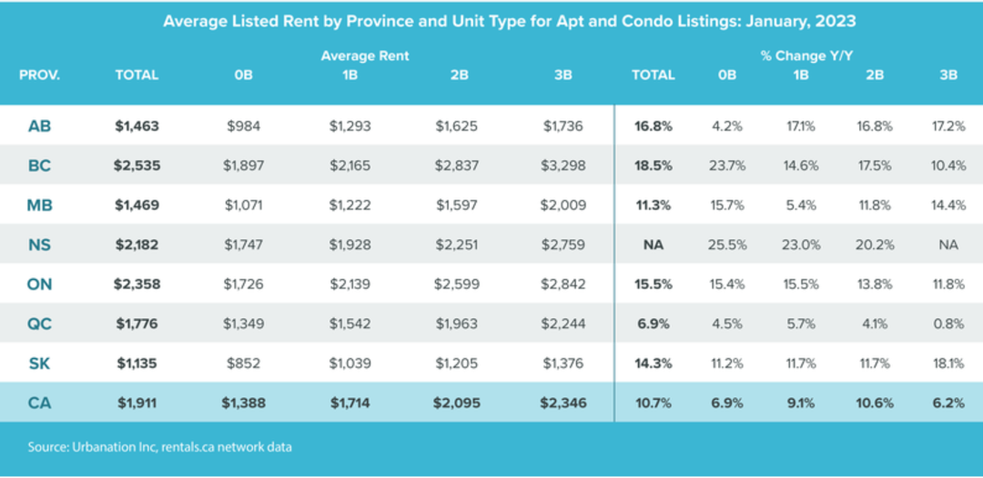 2022年加拿大的平均租金涨幅为 10.9%