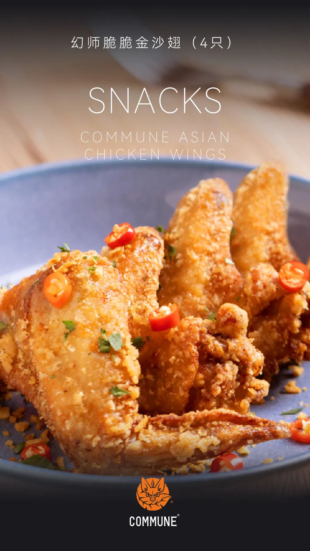 脆脆金沙翅:必点 !!超juicy !!嘎嘎好吃,简直惊艳味蕾,四根分量十足的鸡全翅以自制酱料腌制入味,皮酥肉嫩,满满流沙口感,咸甜蒜香味十足!