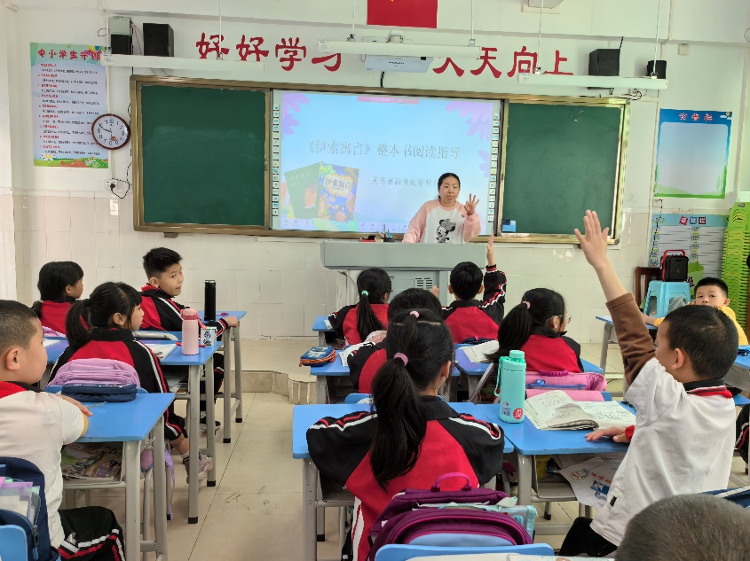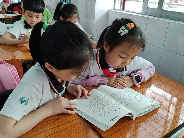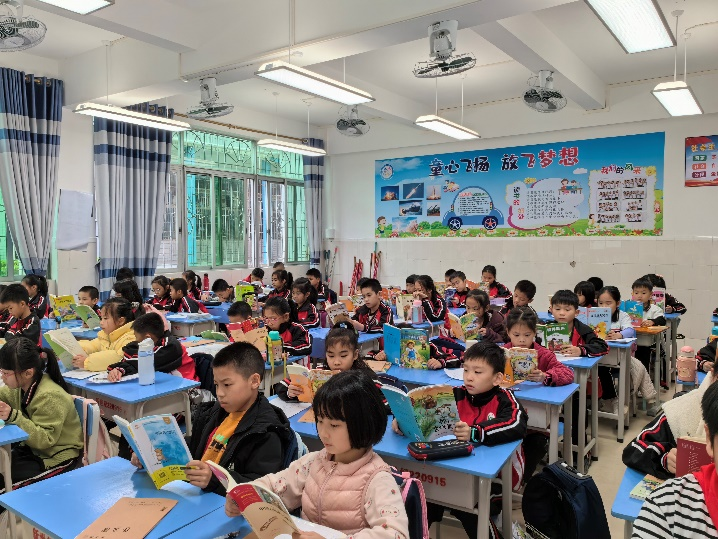 俗话说:最是书香能致远。为了建设书香图书角,同学们纷纷拿出自己平时珍藏的图书捐赠与班级,图书角散发出温馨的书香之气,带领着同学们在童话王国里遨游,在寓言世界中成长,感受与想象的种子在他们心中渐渐萌芽。同学们在阅读中品味童话王国中的酸甜苦辣,体会寓言故事中深刻的道理:丑小鸭的顽强,卖火柴小女孩的悲惨,爱穿新装皇帝的虚荣,狐狸哄骗山羊的狡猾,乌鸦喝水的聪明,兔子与乌龟赛跑时的大意……充满想象的情节和丰富多彩的角色让他们迫不及待用文字描述最真切的感受,用画笔描绘独属自己的想象。成长的泥土,需要阅读的种子。一盏灯、一本书、两代人,心灵在书页里游走,灵魂在文字里徜徉,记忆的快门声也随之定格下这温馨而难忘的时刻。在万家灯火时的书桌前,孩子与大人相互依偎,领略大千世界的魅力所在,收获知识的力量,感受着角色朗读的快乐。“读书好,好读书,读好书”,为进一步推进学生课外阅读活动的开展,三年级语文老师钟燕、柯云燕、蔡苑香在科组长黎清老师和备课组长黎玲老师的指导下,进行以“整本书阅读”为主题的阅读指导课、阅读推进课、阅读分享课的课堂实践和汇报活动。经过一段时间阅读活动的浇灌与培养,孩子们对于讲故事比赛摩拳擦掌,为演绎好自己喜爱的故事,他们语气生动,肢体丰富,配合故事情节讲述一个个精彩的故事。比赛通过一轮轮的筛选,13位种子选手在班级中脱颖而出,故事大王比赛正式拉开帷幕。经过层层角逐和选拔,故事大王终于在3月26日上午迎来了最终的比拼,三年级阅读博览节活动的气氛在此刻达到顶峰。各班选手大展身手,使出浑身解数进行着精彩的演绎,他们利用对自己对故事角色的理解,把书中的角色演活了。现场观众的目光被他们的表演深深吸引着,现场时而发出爆笑,时而掌声不断。