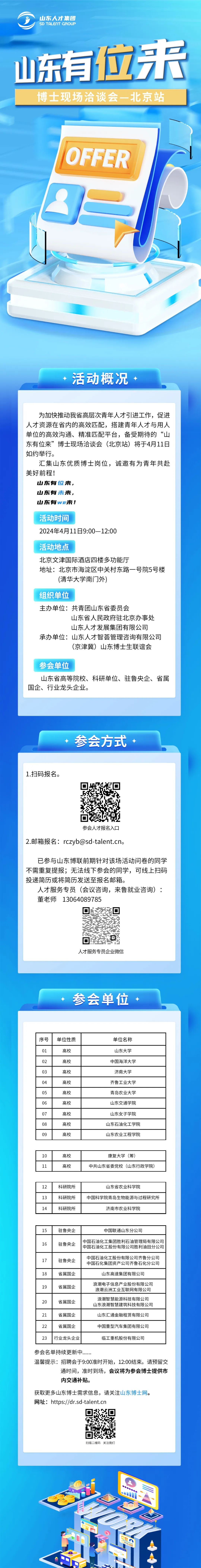 “山东有位来”博士现场洽谈会-北京站,诚邀有为青年共赴美好前程!