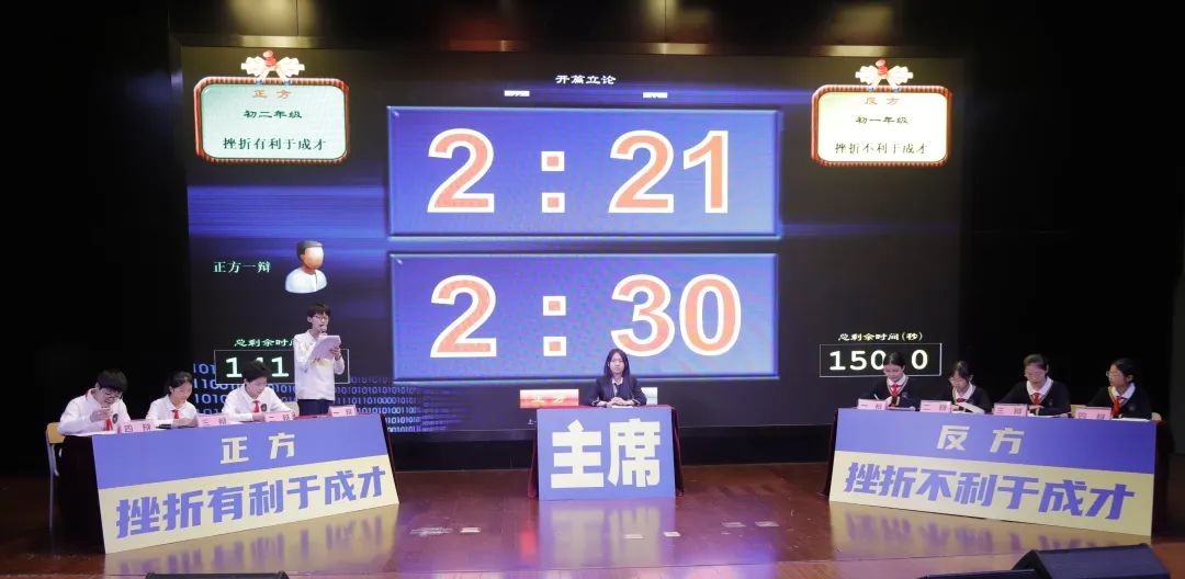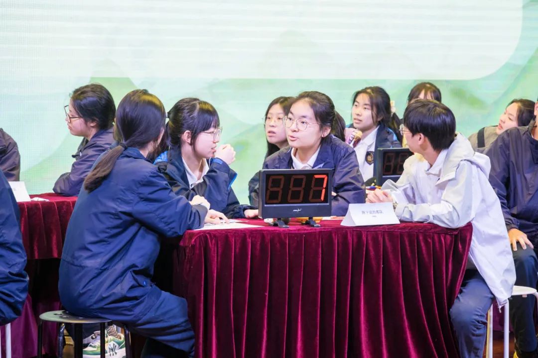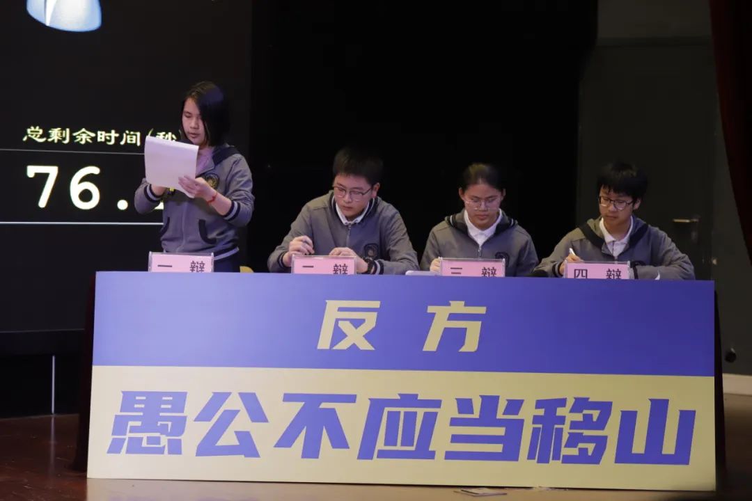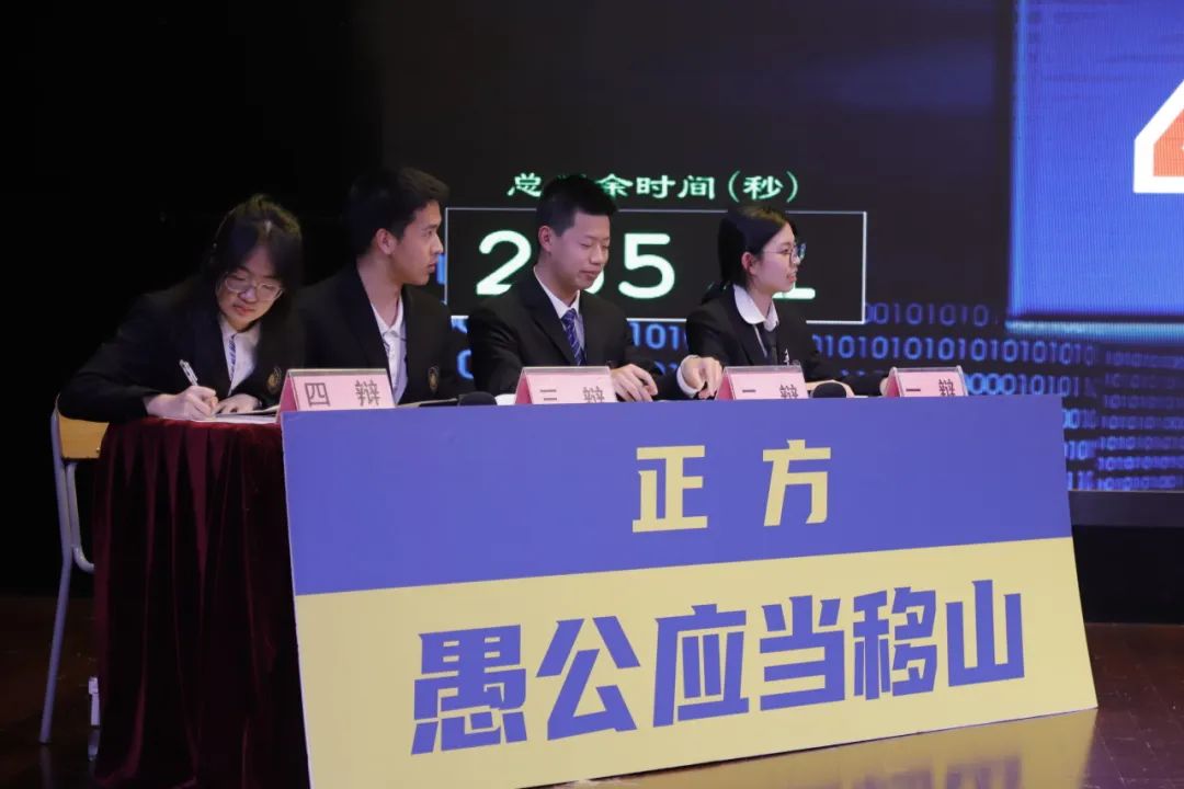 在文化节的辩论赛中,初一和初二年级代表队针对“挫折是否有利于成才”的辩题展开讨论,初三和高中代表队则为“愚公是否应当移山”进行辩驳。他们在分析辩题、收集论据、立论、推翻和重建的过程中不断思考和理解多元的世界。敢于质疑、乐于思考的思辨能力和在实践中练就的语言运用能力将会助力同学们走向更加精彩的人生。