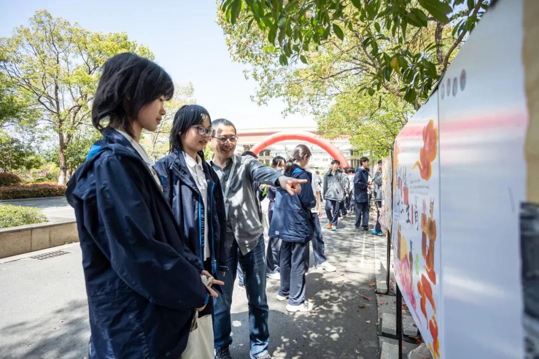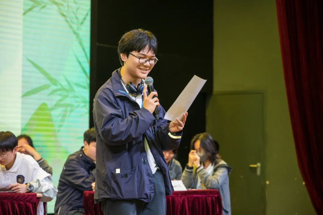 高中部的文化知识竞赛分为必答题、抢答题、论述题等环节。题目围绕传统节日、饮食文化、汉字文化、传统服饰、杭州地域文化等主题,让同学们深刻感受到中华文明的博大精深和源远流长。在论述题环节,各组同学们充分展现了创造力和特长,以丰富的创意展现了龙井茶文化的魅力。