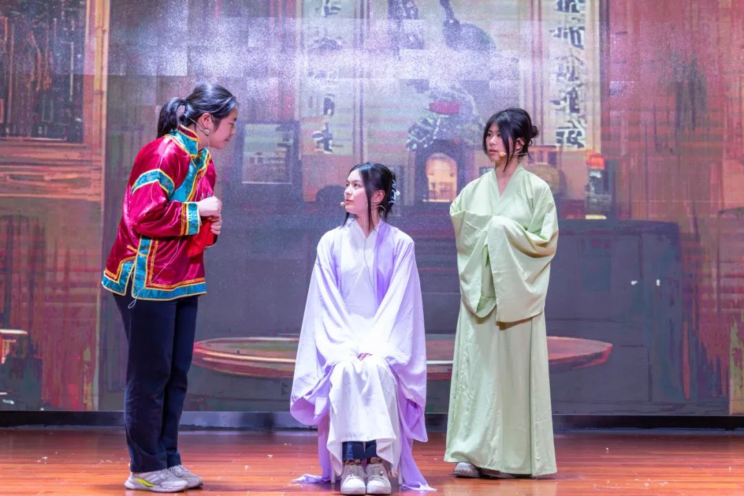 双语部的同学们在舞台上呈现了经典的课本剧表演。将《红楼梦》《琵琶行》《孔雀东南飞》《鸿门宴》等经典文学作品搬上舞台,同学们穿越时空的长廊,走进浩瀚璀璨的中国文化宝库,探寻那些深深镌刻在典籍里的中国故事。通过身临其境的表演,同学们也感受到中华民族深厚的文化底蕴,领略那份穿越千年的独特魅力。