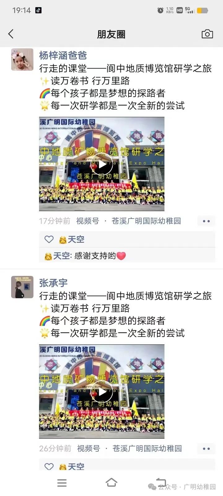 有一种认可叫:家长转发朋友圈。满满的都是感动,这也是对我园举办本次研学活动最完美的诠释。我们将继续努力,不负所托,温暖前行!