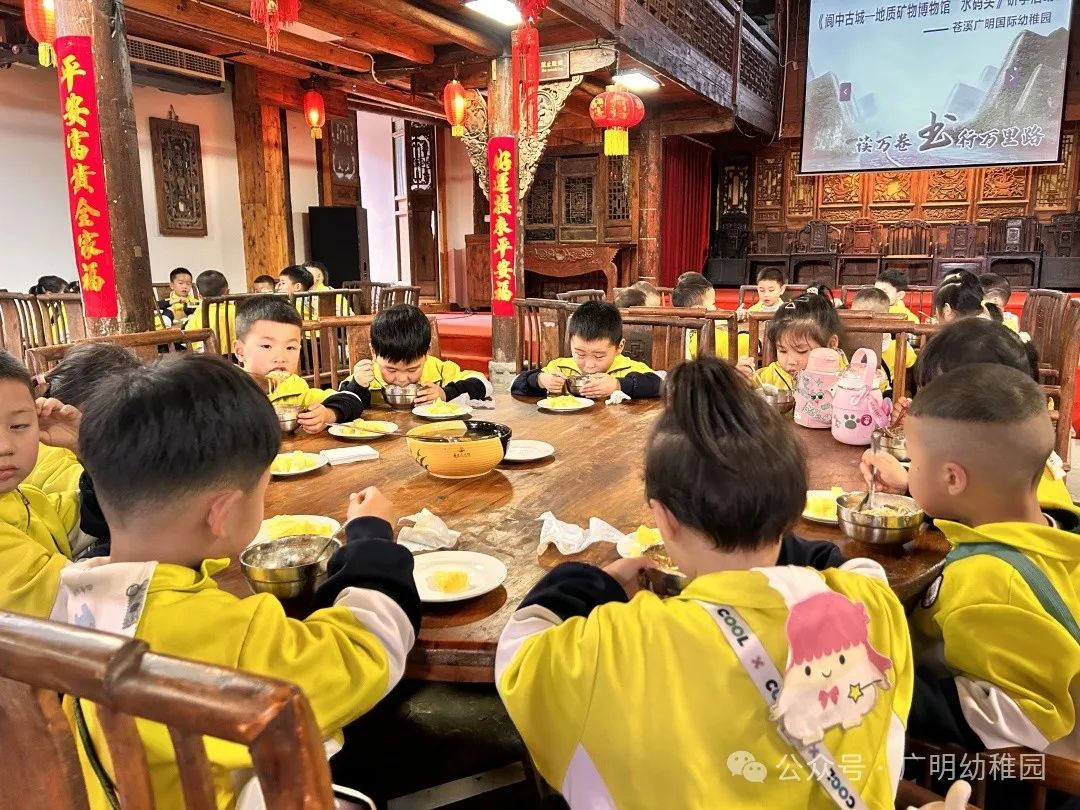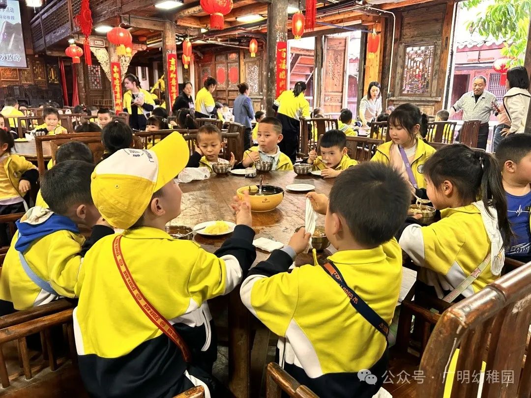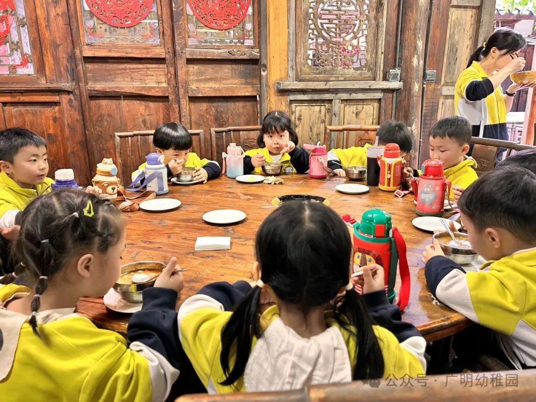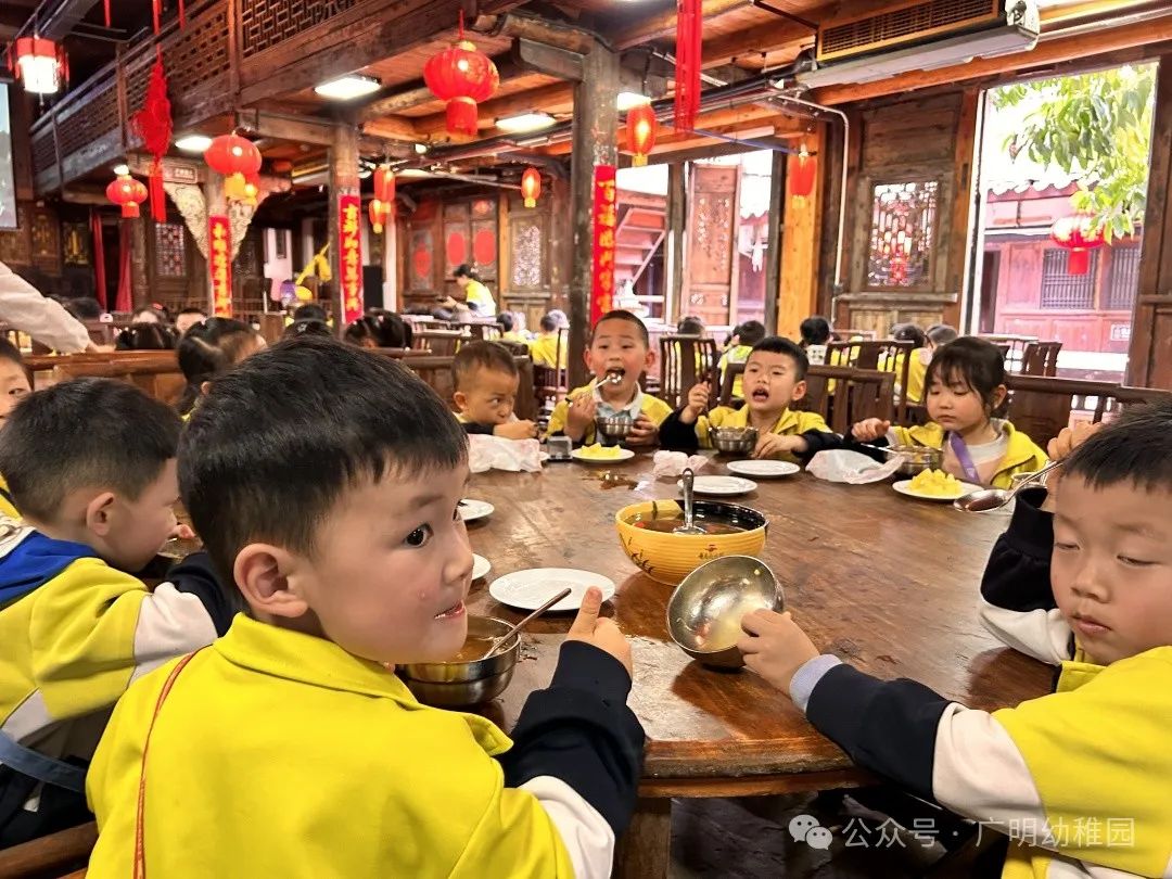 本次的研学计划中怎能少的了美食的加持,这是孩子们最期待的环节,是属于孩子们的快乐时光。品尝美食之前,园长妈妈进行了温馨提示,希望小朋友们要珍惜粮食不能浪费,同时也感谢远大集团水码头客栈对本次活动的大力支持。