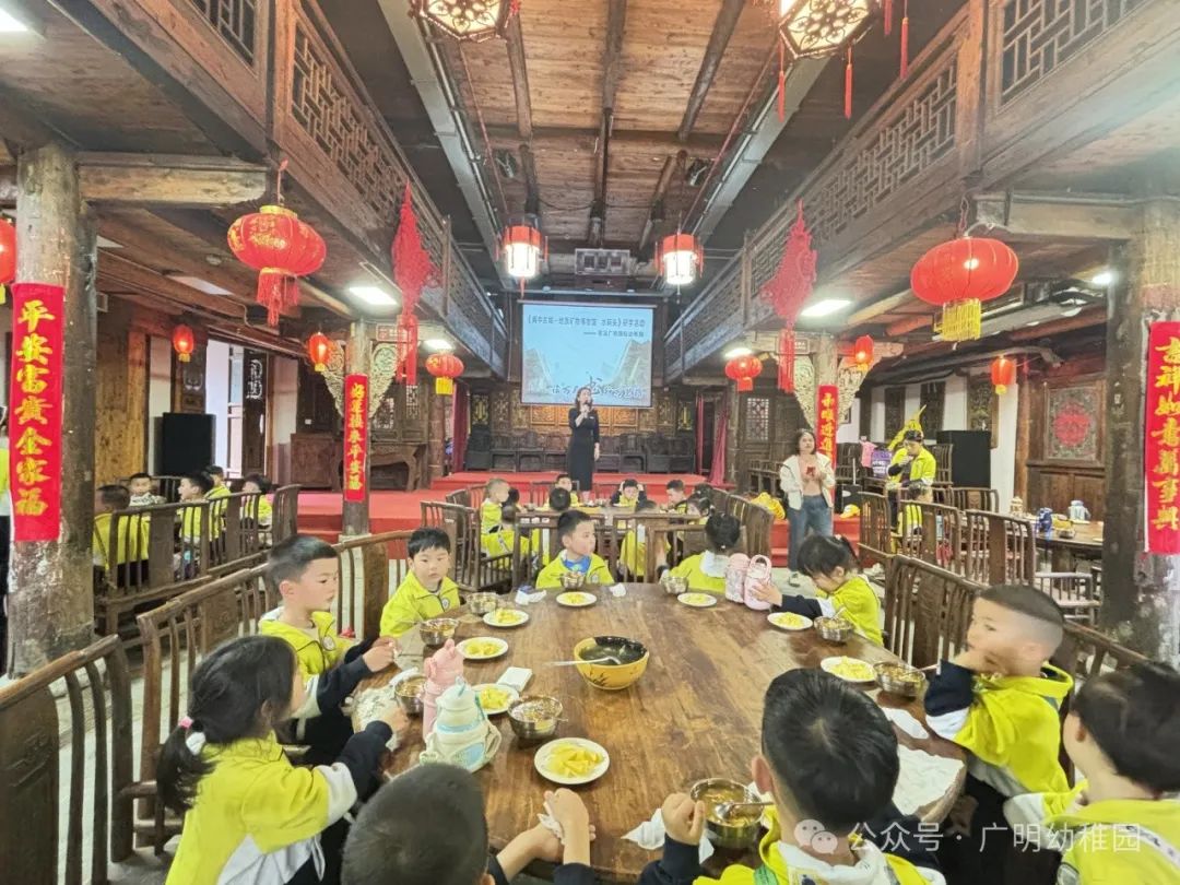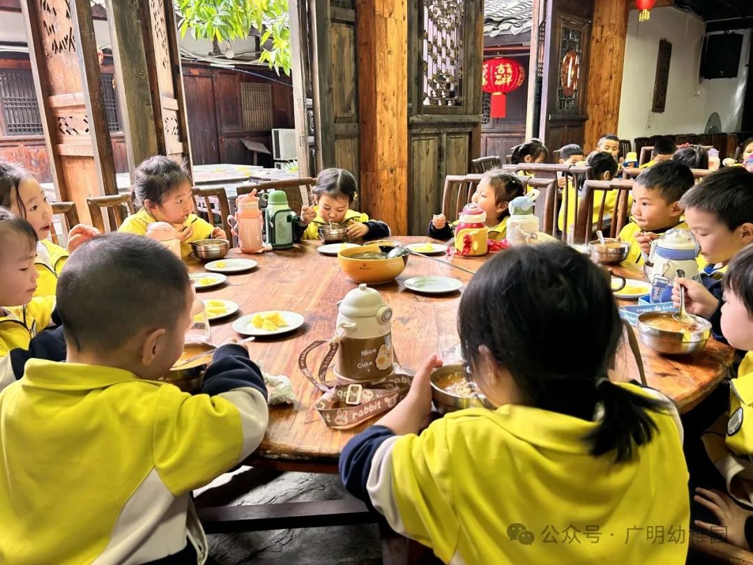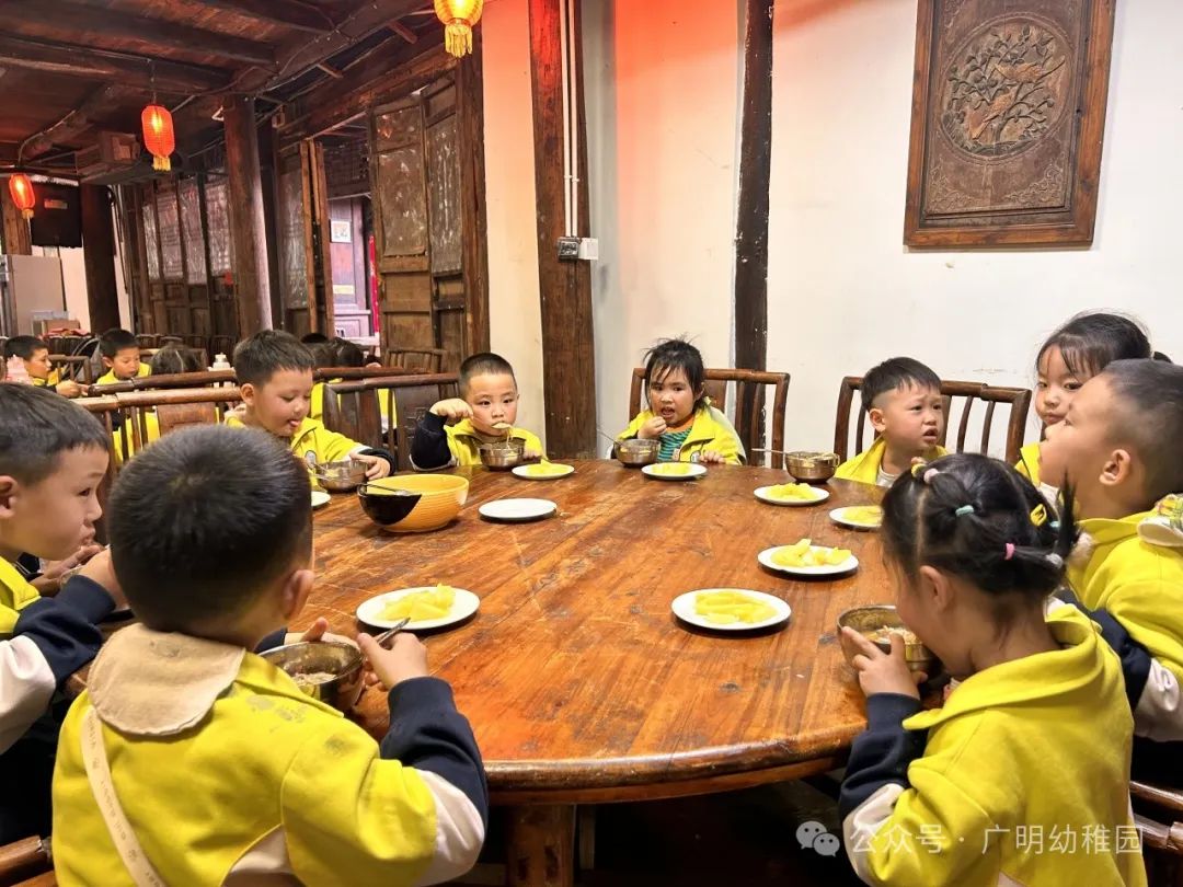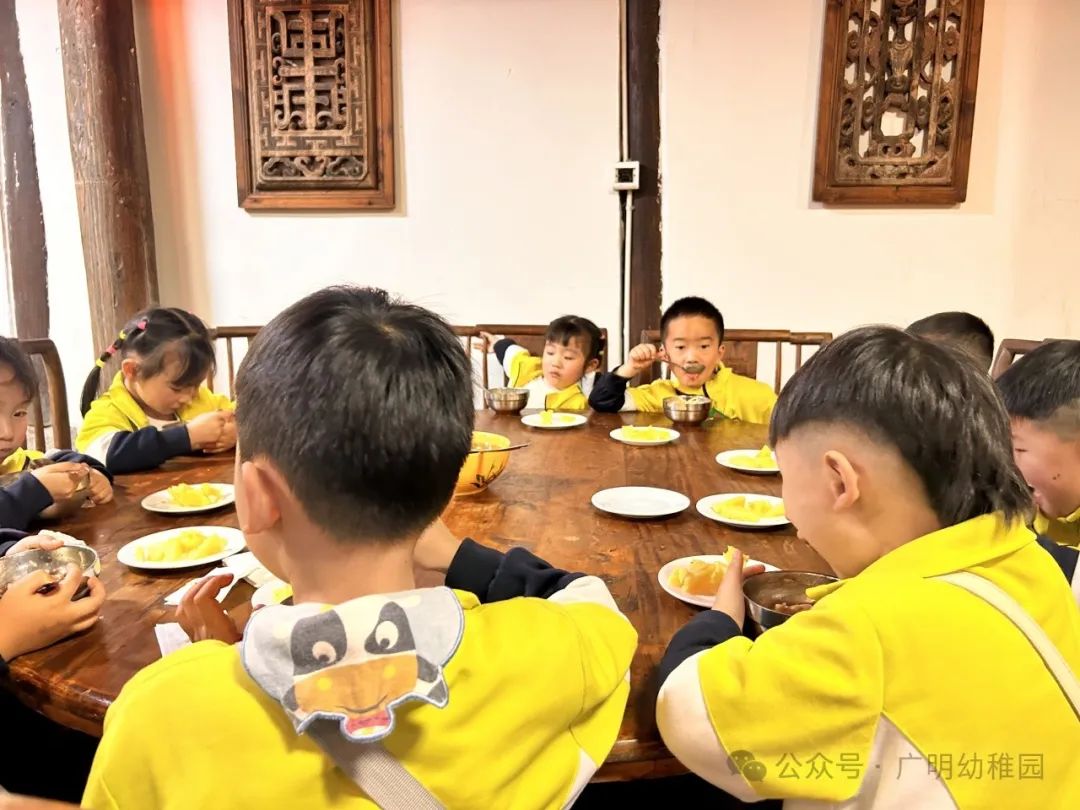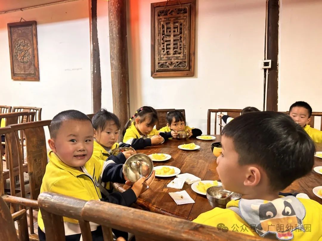 本次的研学计划中怎能少的了美食的加持,这是孩子们最期待的环节,是属于孩子们的快乐时光。品尝美食之前,园长妈妈进行了温馨提示,希望小朋友们要珍惜粮食不能浪费,同时也感谢远大集团水码头客栈对本次活动的大力支持。