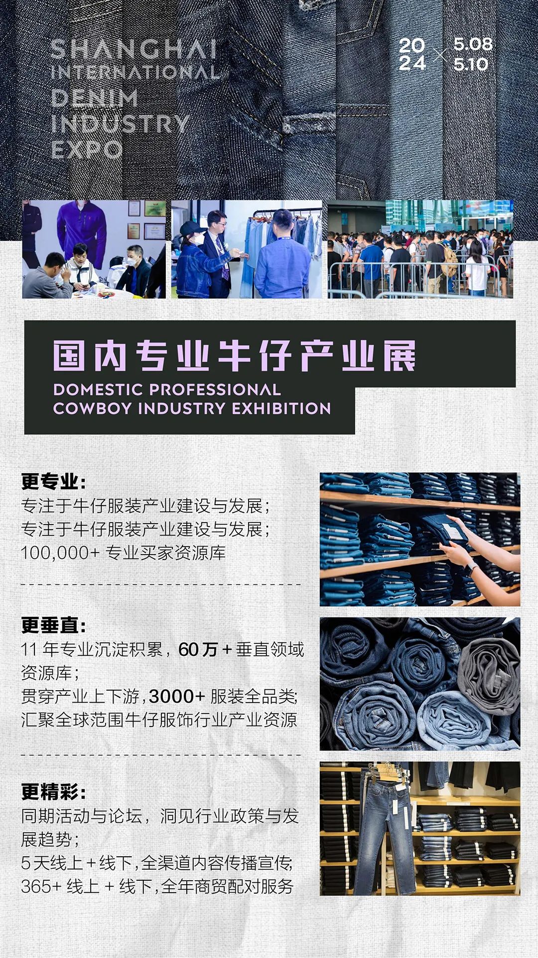 在牛仔产业庞大的消费群体以及广阔的发展前景下,沉寂数载的上海国际牛仔产业展览会将于2024年5月7-9日重启,聚焦牛仔产业上下游精准对接,辐射产业上下游各细分领域。