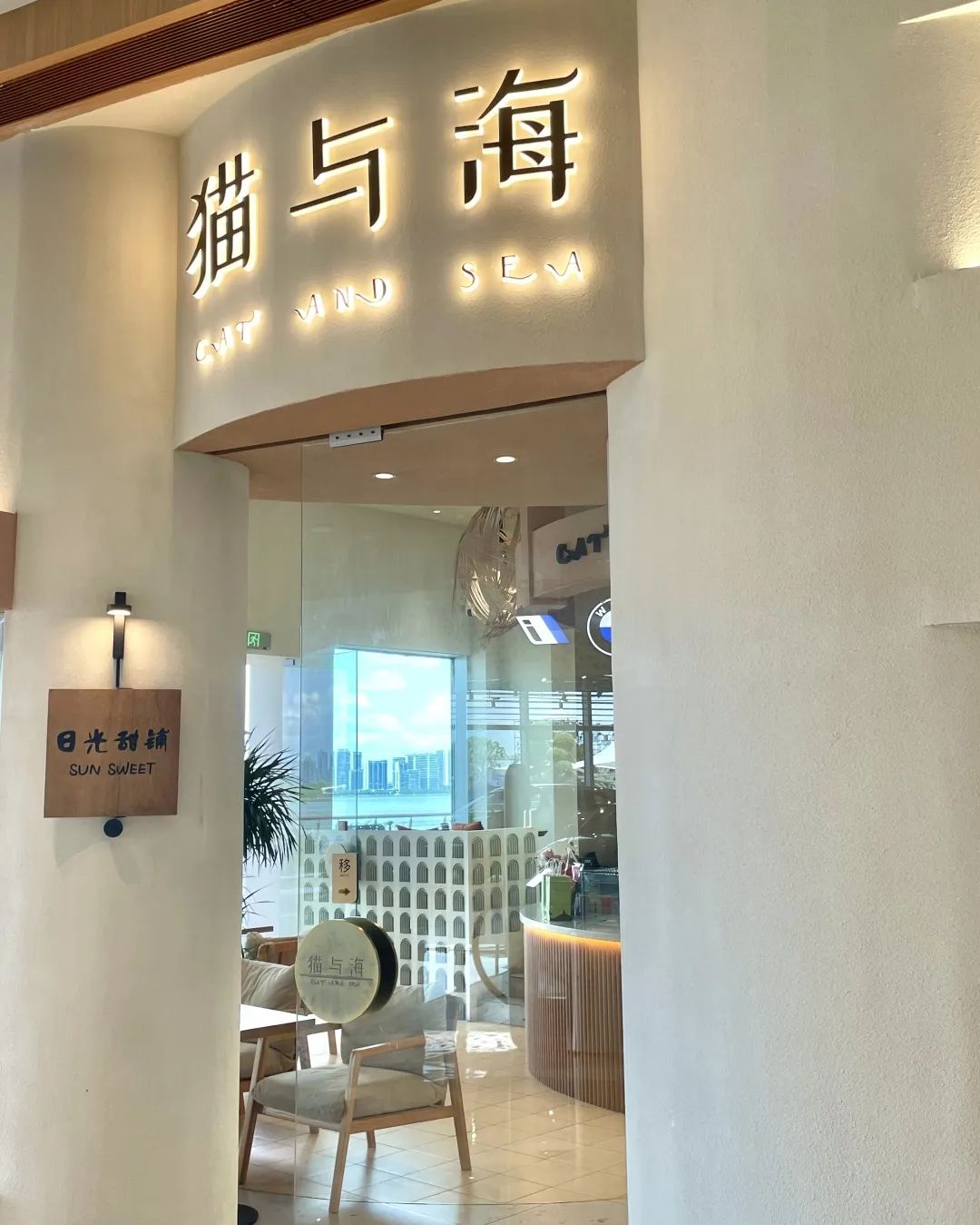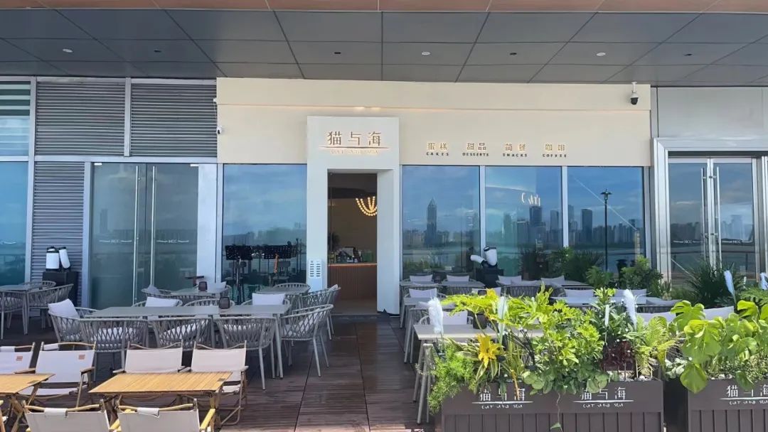 猫与海坐标海南海口华彩海口湾广场南门一楼,面向大海拥有180度海景视角,主营各种手作甜品、生日蛋糕私人定制、简餐和咖啡。