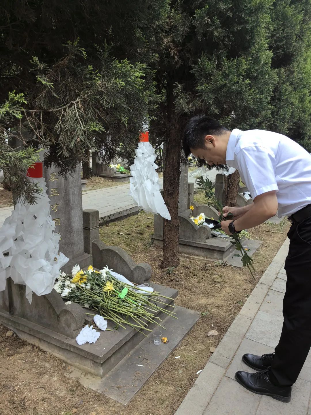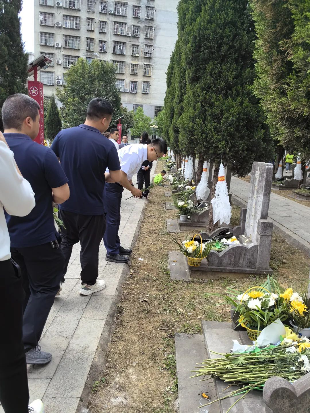 活动中,全体同志向烈士纪念碑三鞠躬,支部书记带领全体党员重温入党誓词,随后全体人员进入墓区敬献鲜花。