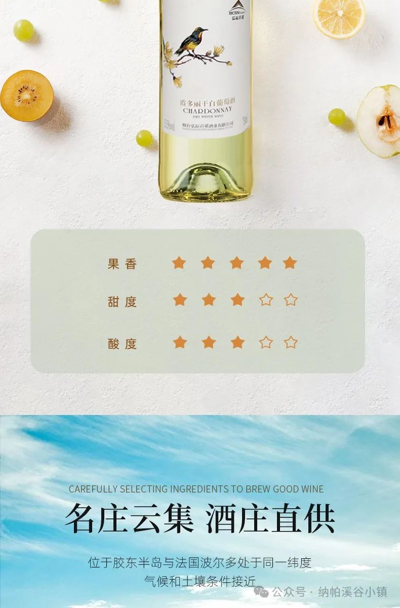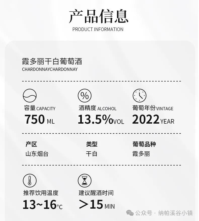 • 霞多丽经典干白产自山东蓬莱产区,属高贵的白葡萄品种,色泽呈金黄色,晶亮透明,酒香宜人,口感清新淡雅,酒质一流。它富有浓郁而多层次的热带水果香气,如西柚、菠萝、苹果的味道,经香木的浸泡发酵,又融合几许细腻的木香和增添了香草的香气,余韵悠长持久。 • 建议搭配海鲜大餐饮用。 • 最佳饮用温度:13--16℃。
