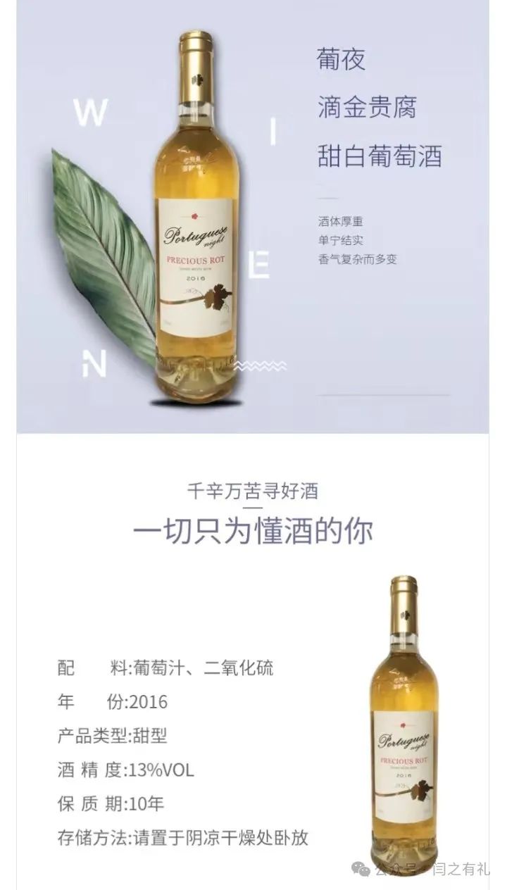 葡夜 滴金贵腐甜白葡萄酒 13度甜型白葡萄酒 750ml/瓶 生产日期:2020.5.30