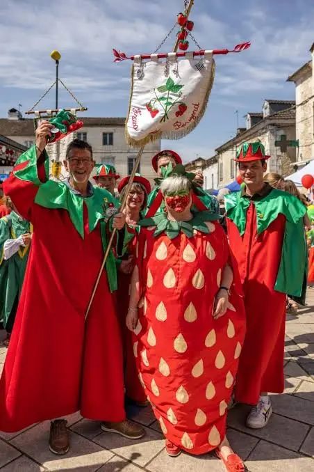 这项盛大的活动必须见证镇上所有面包师和糕点师齐聚一堂,制作一个巨大的草莓馅饼——直径为 8 米,使用 800 公斤水果制成。