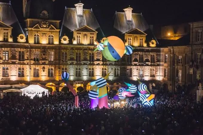 在比奥韦斯花园 (Jardin Biovès),游客可以看到高耸的柑橘雕塑,这些雕塑在夜间灯光秀中产生耀眼的橙色和黄色色调。