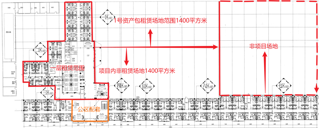 本次为拆分资产包招租,1号资产包租赁范围如图所示