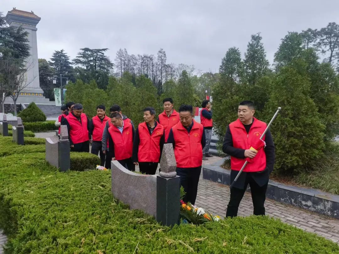 清明时分,往往是洗心之时。商会党支部党员、青委会成员们怀着庄重、崇敬的心情垂首肃立,默哀鞠躬、敬献鲜花。在先烈的墓前,通过祭奠逝者的方式,感知存在的价值。烈士英碑高耸云,肃默敬礼祭哀思。