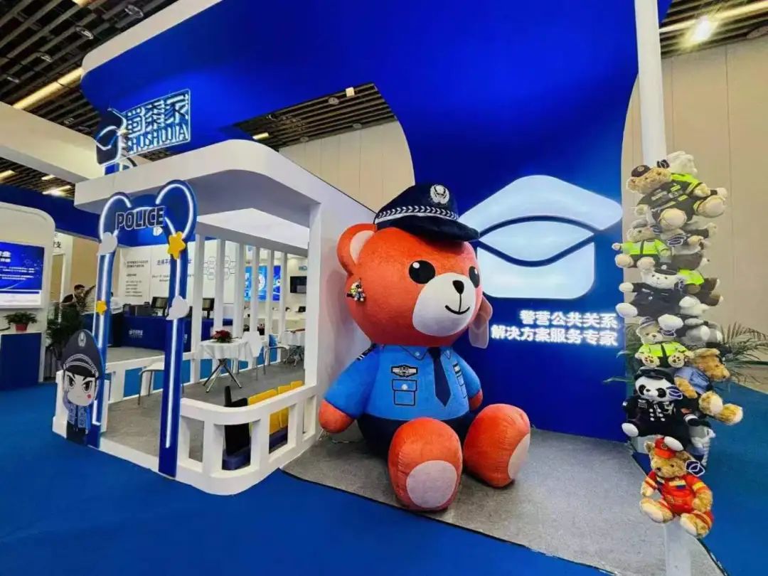 走进交博会A3展馆(全称:第十四届中国国际道路交通安全产品博览会暨公安交警警用装备展),您将会被一只憨态可掬的交警大熊所吸引。它不仅是我们的特色标志,更象征着我们对每一位来访者的温馨问候。