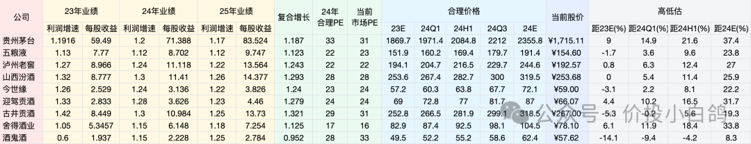 估值表中舍得和酒鬼酒存在杀估值的风险,如果Q1和机构预测的出入不大的话那我会调低24年的合理价格。