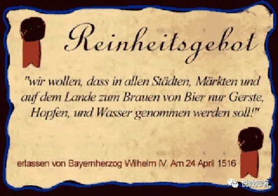 时间来到1516年,巴伐利亚公爵威廉四世颁布了“巴伐利亚啤酒纯净法法案”。该法是由1487年慕尼黑公国啤酒纯净法演变过来的,1506年随着慕尼黑公国和巴伐利亚公国再度合并,慕尼黑公国的啤酒纯净法收到了巴伐利亚的法规里。该法规定,啤酒的酿造原料只能是大麦、清水和啤酒花。纯净法有效地改善了当时酿酒厂什么东西都往酒里加的局面,有人说它是世界上最古老的食品安全法,也有人奉它为啤酒酿造行业规范的鼻祖。实际上,1516年巴伐利亚纯净法也有经济、社会等因素的考量,即为了控制粮食原料、防止饥荒的发生。该法案演化出来的“啤酒纯净法”对之后的啤酒世界影响巨大,现在很多商家都会宣称,“我们遵守1516年的啤酒纯净法的酿造方式”。事实上,真正遵循1516年啤酒纯净法的很少,德国版啤酒纯净法已经与最初1516年的啤酒纯净法大相径庭。德国版允许下层发酵啤酒(拉格)使用酵母,而上层发酵啤酒(艾尔)还可以使用蔗糖、甜菜糖或其他糖、改性淀粉和衍生自任何上述糖类的着色剂。1516年啤酒纯净法历经时代演变,现今仍存在于德国税法《关于1993年7月29日颁布临时啤酒法案修正案公告》的第9条。