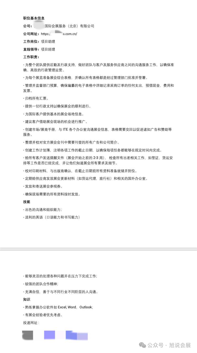 附:某家会展公司的项目助理招聘,可以评估一下自己是否胜任?反正我感觉自己有点吃力……
