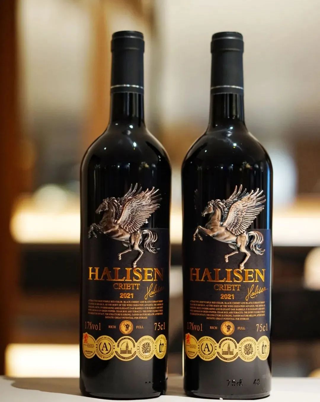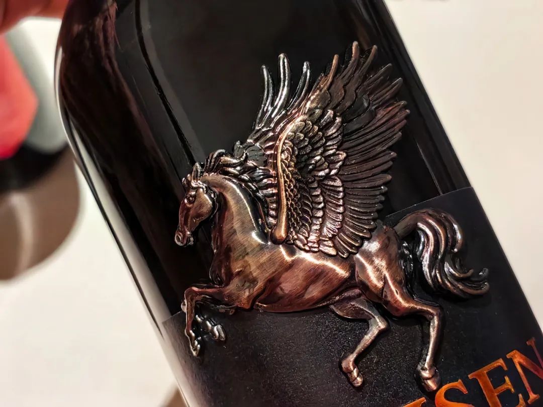 瓶身镶嵌飞马浮雕+5大酒庄奖章标识傍身!
