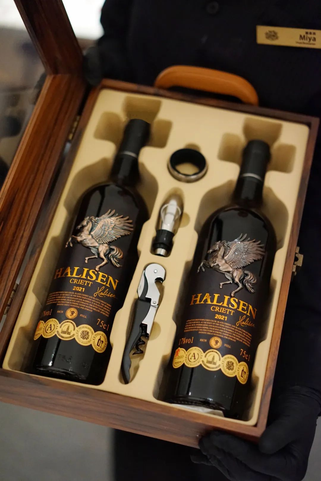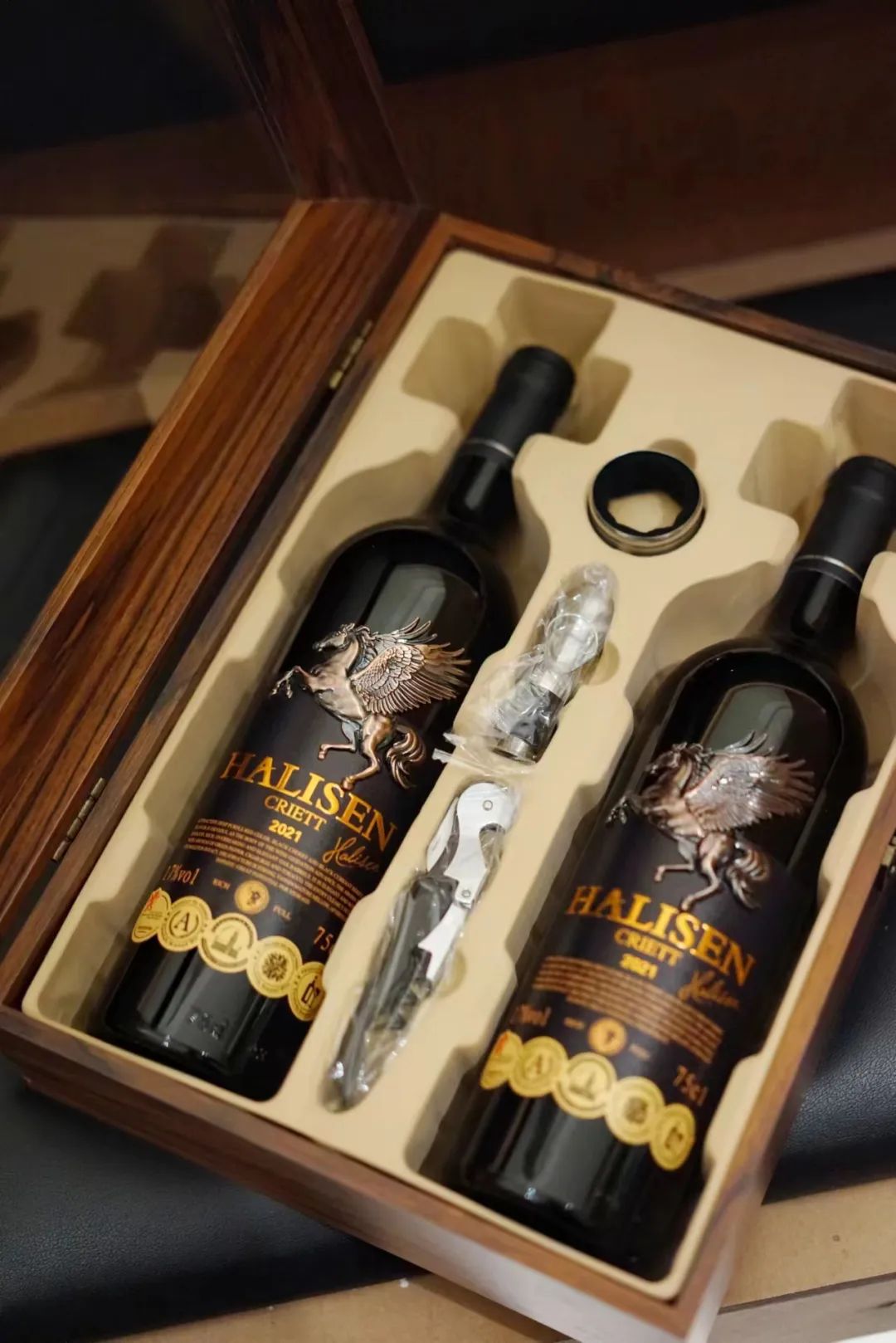 沉甸甸的5大奖章不仅赋予了庄主对这款酒的认可!更加提升了这款酒的品质!细心的粉丝应该可以看到,瓶身除了5大酒庄标识,还采用了飞马浮雕工艺!飞马这个神秘而充满诗意的形象,在西方文化中,飞马珀伽索斯(Pegasus)是希腊神话中的一匹著名神马,象征着神奇的力量和自由!而在东方文化中,飞马被赋予了神圣、尊贵的身份!有着希望、勇气、自由和追求!所以当你看到瓶身上的重工飞马浮雕很难不爱,视觉非常震撼!就连酒标都是采用更富质感的凸版雕刻!摸起来凹凸有致,看起来活灵活现,这是gao端酒才有的细节感!空闲时,伴随着音乐的旋律,入口的一瞬间,唤醒味蕾。睡前微醺小酌一杯,更是给生活增添仪式感。毕竟,亲朋好友相聚少不了它的助兴;约会开一瓶,鲜花、烛光、红酒,浪漫值拉满!独处时慢饮,身心舒缓!原本这一批法国飞马浮雕干红木盒是进口商的新春订单,由于某些原因,临时撤单!所以才被我们搞来了!作为福利给大家:今天推文价仅需:128元/2支*750ml礼盒装!2提、3提入手更优惠~还免费送海马刀,开酒省时省力!