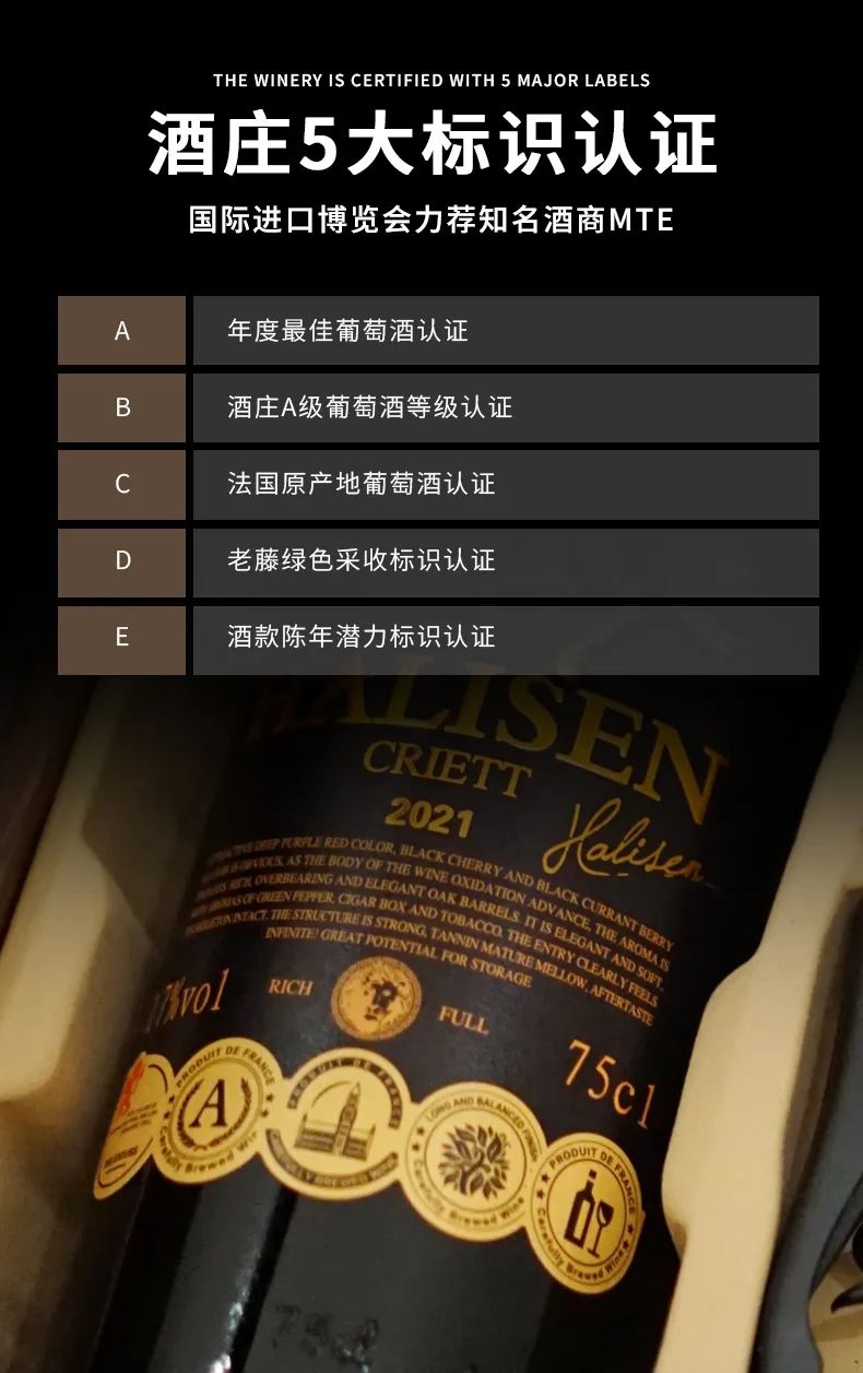 势力横跨几大洋的飞马浮雕干红,有幸获得庄主亲自赋予的奖章标识!只有这种采用单一控产的葡萄品种+采用30年老藤人工绿色采收,逐粒精选,酿酒和储酒的温度和湿度都恰到好处,才能有幸获得庄主亲自赋予的奖章标识!?年度zui佳葡萄酒认证