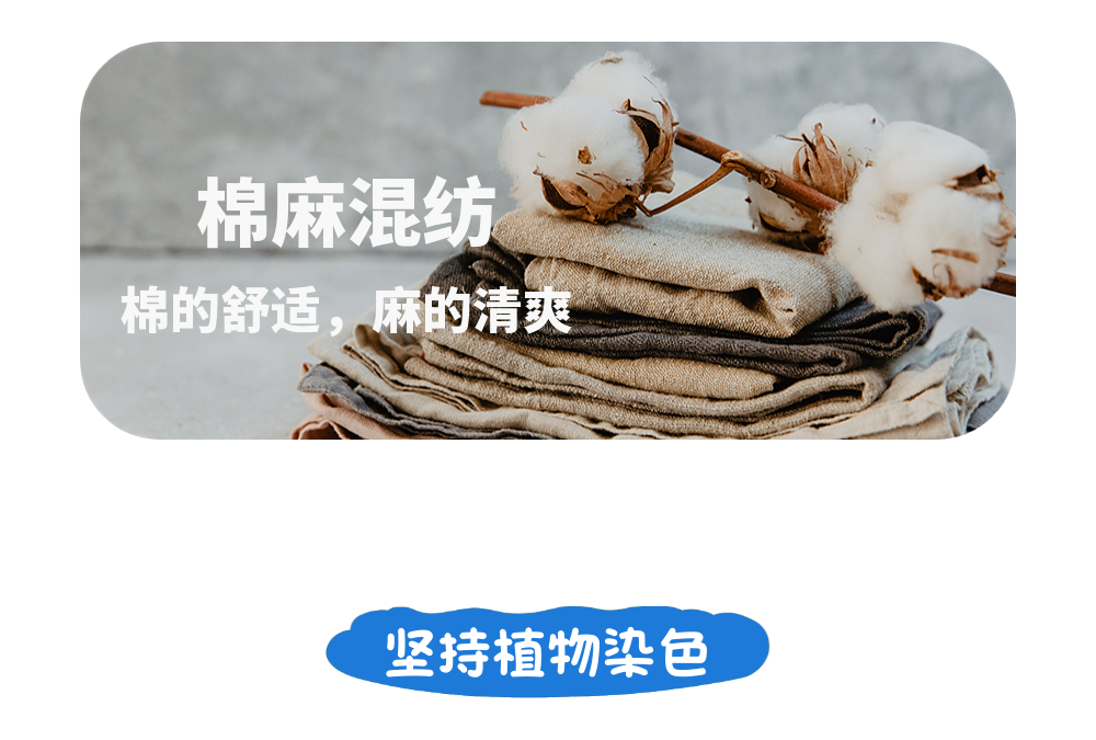 品牌以“有机环保服饰”为产品主题,追求自然有机环保面料与健康舒适的体验,坚持选用GOTS认证、有机产品认证的有机棉花,坚持纯天然植物染色。