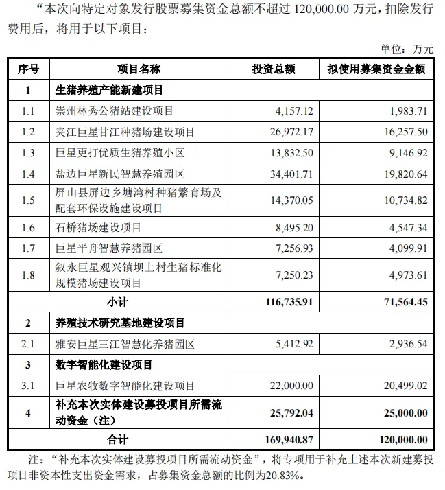 巨星农牧募集12亿元,生猪出栏目标超1000万头