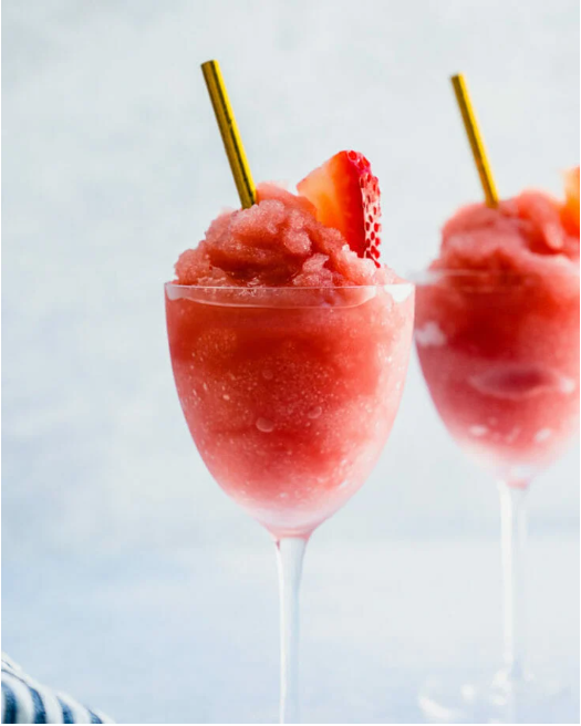 步骤:混合草莓、玫瑰和蜂蜜(或枫糖浆):然后过滤。倒入容器冷冻6小时或过夜!然后使用破壁机将冰块打碎倒入杯中,使用一些新鲜草莓装饰。