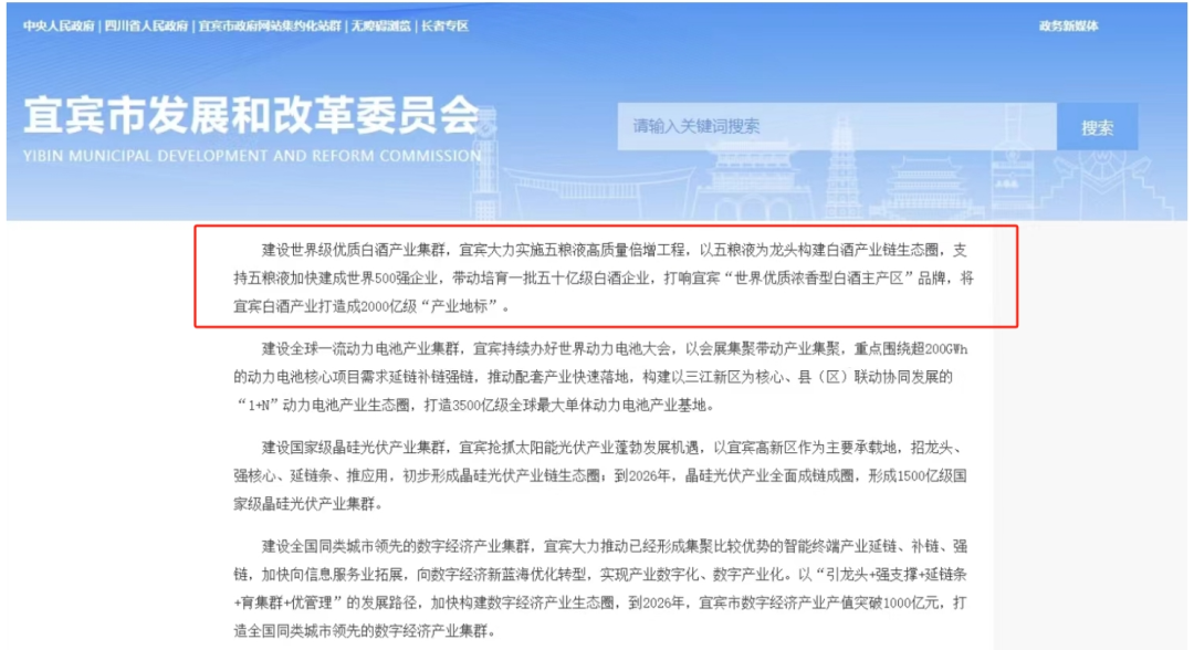 3月24日,宜宾产区出炉了2000亿级白酒规划,明确提出加快建设世界级优质白酒产业集群,大力实施五粮液高质量倍增工程,以五粮液为龙头构建白酒产业链生态圈,支持五粮液加快建成世界500强企业,带动培育一批五十亿级白酒企业,打响宜宾“世界优质浓香型白酒主产区”品牌,将宜宾白酒产业打造成2000亿级“产业地标”。