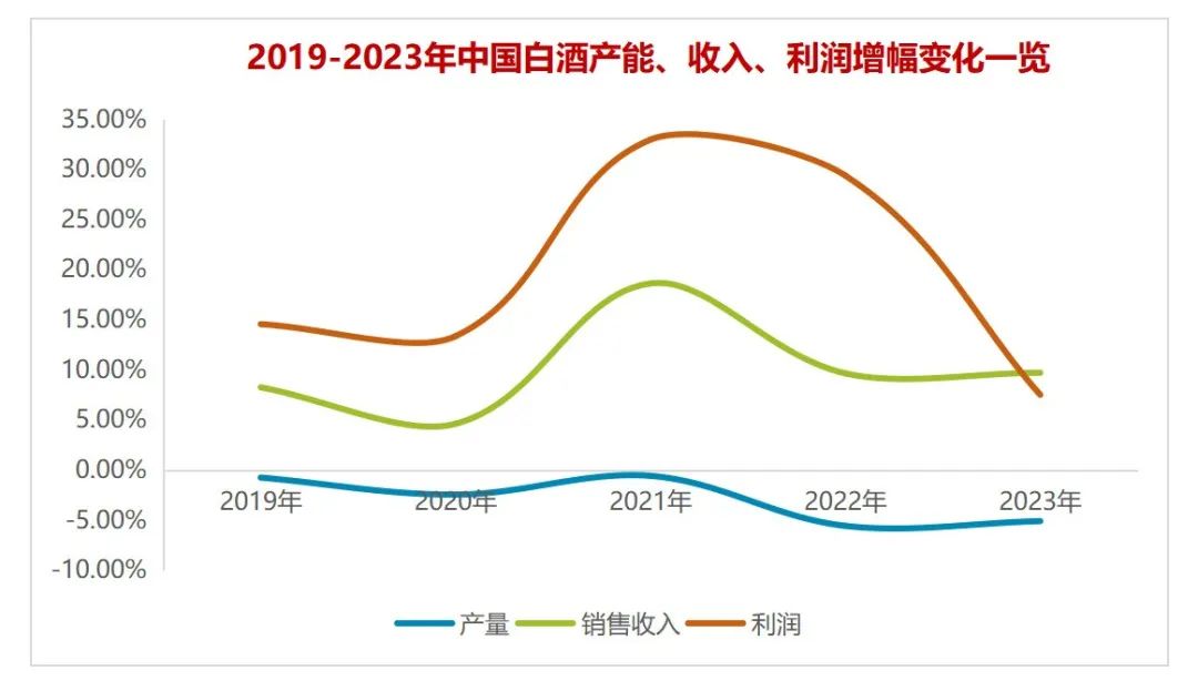 中国酒业协会数据显示,2023年,全国白酒行业实现总产量629万千升,同比下降5.1%;完成销售收入7563亿元,同比增加9.7%;实现利润总额2328亿元,同比增长7.5%。